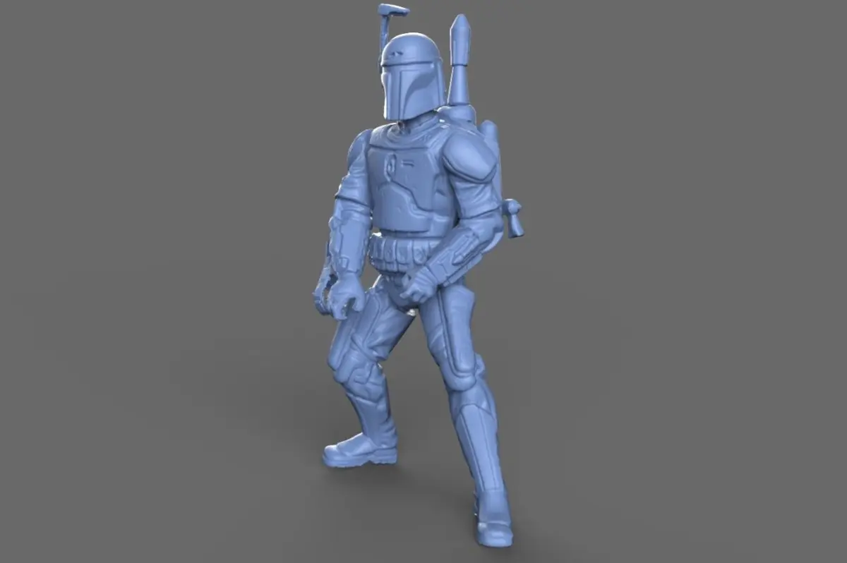 This model is a 3D scan of a Jango Fett action figure, this model is suitable as a reference for modeling, and retopology, and with some work, can be used to 3D Print.