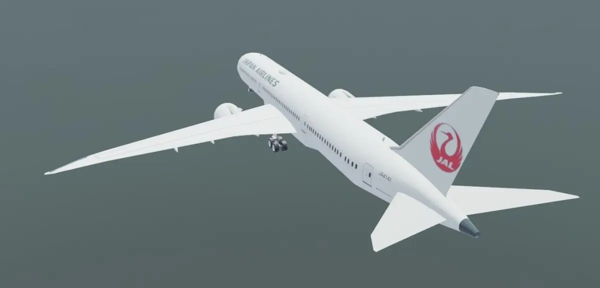 Heres an Low poly (about 25k tris) model of this plane in Japan Airlines livery