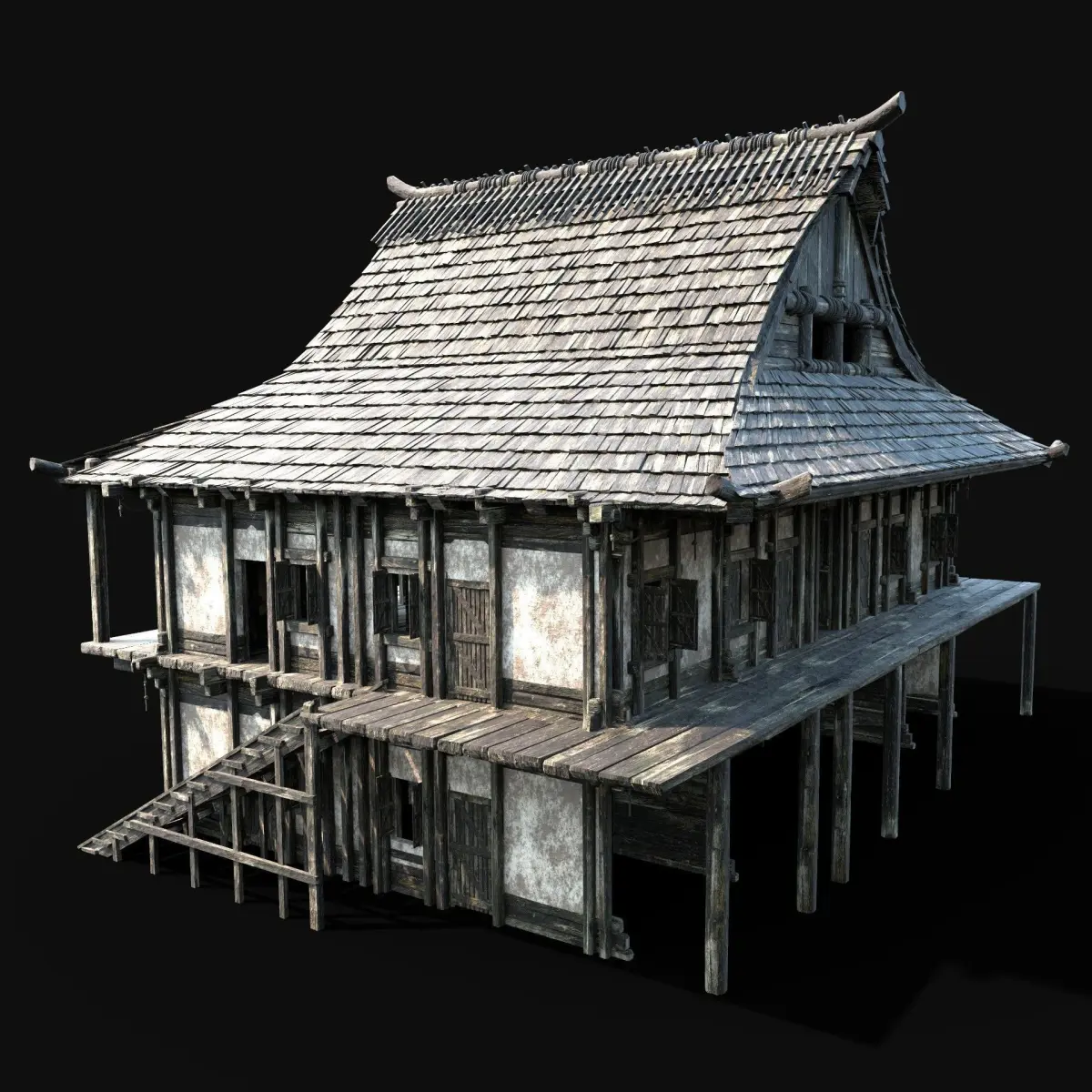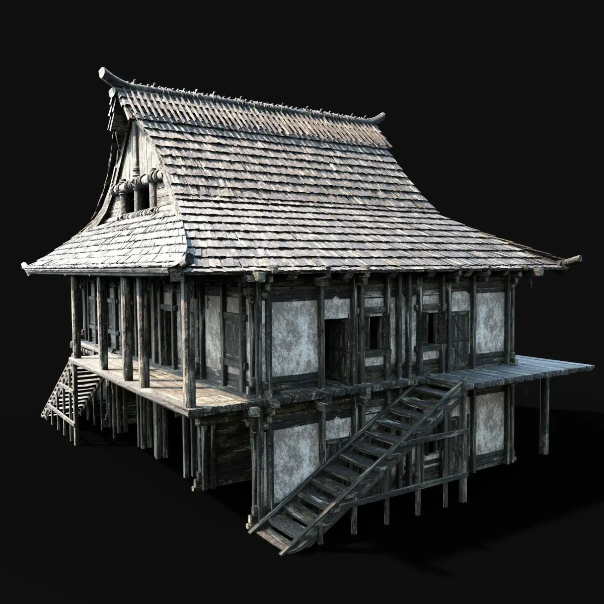 - Next gen, AAA quality, game-ready model of feudal asian house.