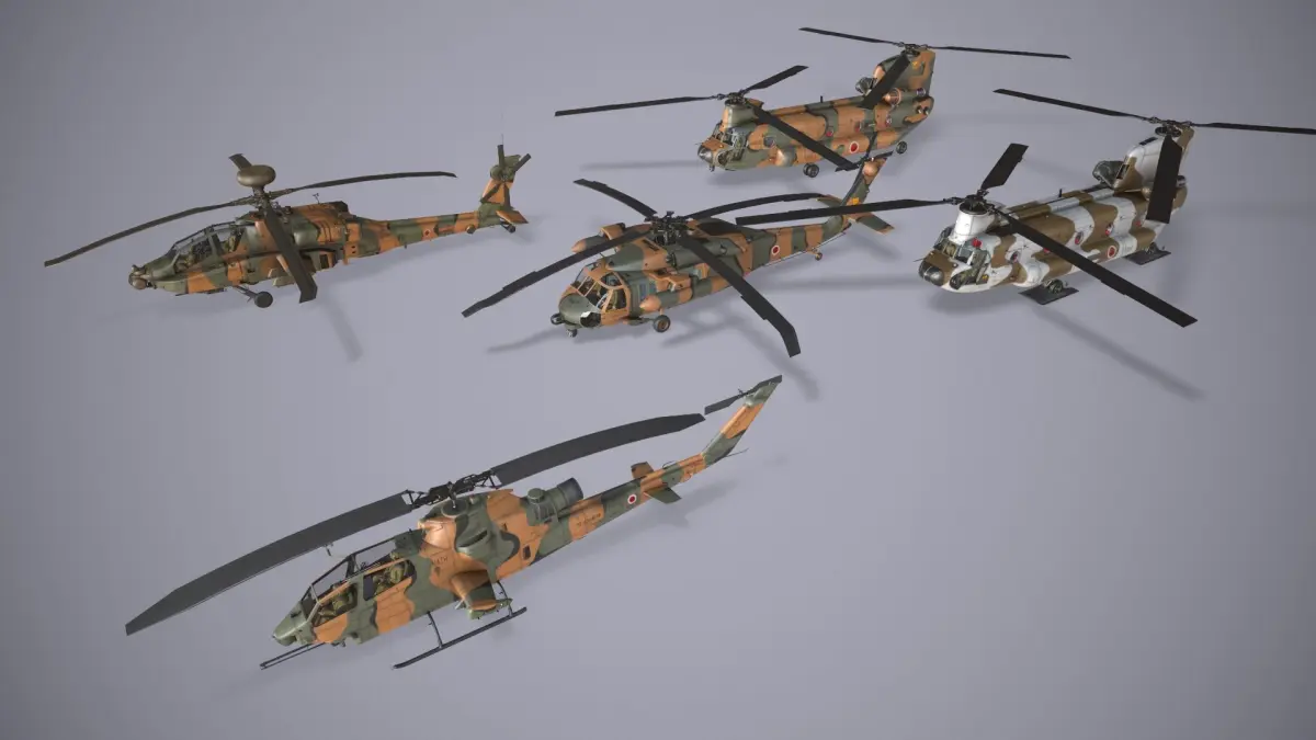 Photoshop files are available for the following models:Helicopter Bell AH-1S Cobra JGSDF Akane KisarazuHelicopter Bell AH-1S Cobra JGSDF Aoi KisarazuHelicopter Bell AH-1S Cobra JGSDF LiveryHelicopter Bell AH-1S Cobra JGSDF Wakana KisarazuHelicopter Bell AH-1S Cobra JGSDF WinterHelicopter Bell UH-1B Iroquois JGSDFHelicopter Bell UH-1B Iroquois JGSDF 2Helicopter CH-47 Chinook Japan Ground Self Defense Force