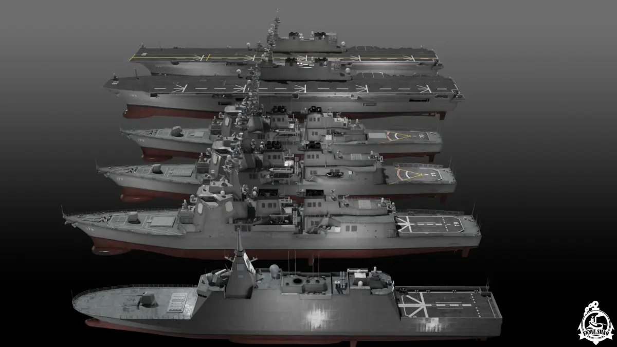 Surface warships of JMSDF, Helicopter carrier Kaga DDH-184, Izumo DDH-183, Guided missile destroyer Kongo DDG-173, Atago DDG-177, Maya DDG-179 and Multi-purpose Frigate Mogami FFM-1. Modeled with Blender 3.3. PBR materials. Vertices number of each model is between 100-200k. UV unwrapped for main hull of each ship. FBX and OBJ format supported. Some materials may only work properly under blender.