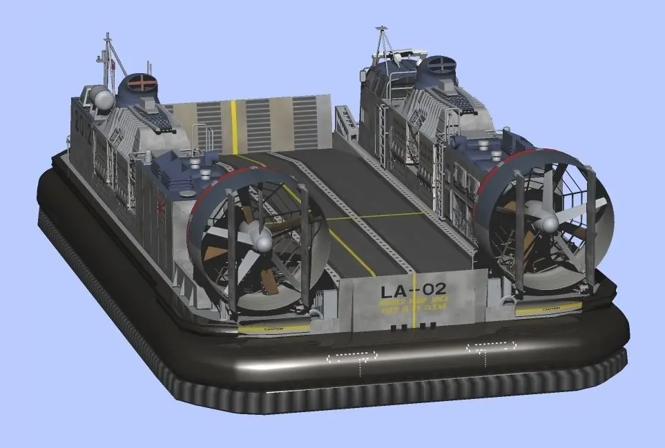 海上自衛隊仕様のLCAC エアクッション型揚陸艇です、自衛隊にしては珍しく米軍仕様と殆ど同じ(無改造)で使用。 輸送艦「しもきた」の後部ランプドア内に2艇収まってます。「しもきた」と併せて、ご使用頂く事を推奨します。It is not a stl file for 3D printing.