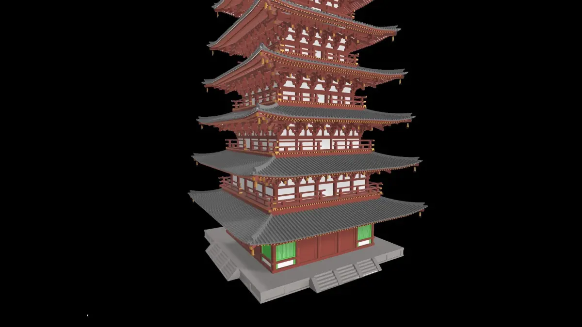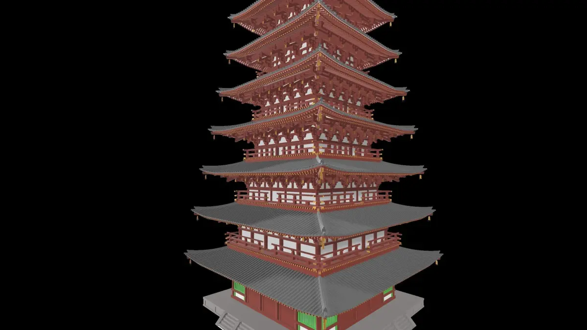 It's a seven-pile-tower located in Tōdai-ji Temple.This model include textures and materials. The original formats is .skp.There are total two kinds of fbx file are provided, one is binary(easy to modify and capable to Blender), the other is ASCII.igs, dwg, dxf files are also available so that you can modify and use it in CAD software, but be aware cad files are relatively hard to open. You may want to open them with a good computer.