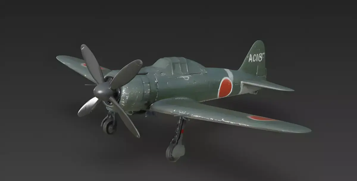 High-Fidelity Nakajima Sakae Engine and Cowling DetailA primary feature of this model is the integrated Sakae radial engine assembly and three-blade propeller. Every individual cooling fin visible behind the cowling, the recessed machine gun ports on the upper nose, and the specialized aerodynamic spinner are modeled with significant surface depth, providing a clear visual indicator of advanced mid-century aviation engineering and adding incredible tactile detail for close-up inspection during carrier-deck or hangar scenes.