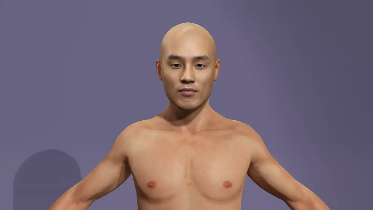 Realistic male 3D Model, the character is 90% similar to the famous Japanese adult film actor Tony Ooki. Fully rigged, including fingers and facial expressions. It supports a wide range of movements and expressions, with textures for every part of the body. Standard skeleton rigging, compatible with the UE engine’s native skeleton, and supports re-targeting to use motion libraries.日式男性3D模型,AV男优东尼大木,暗黑周杰伦。有绑定,全身包括手指、面部表情都已有绑定。可做各种动作表情,各部位均有贴图。标准骨骼绑定,兼容UE引擎骨骼,支持重定向。