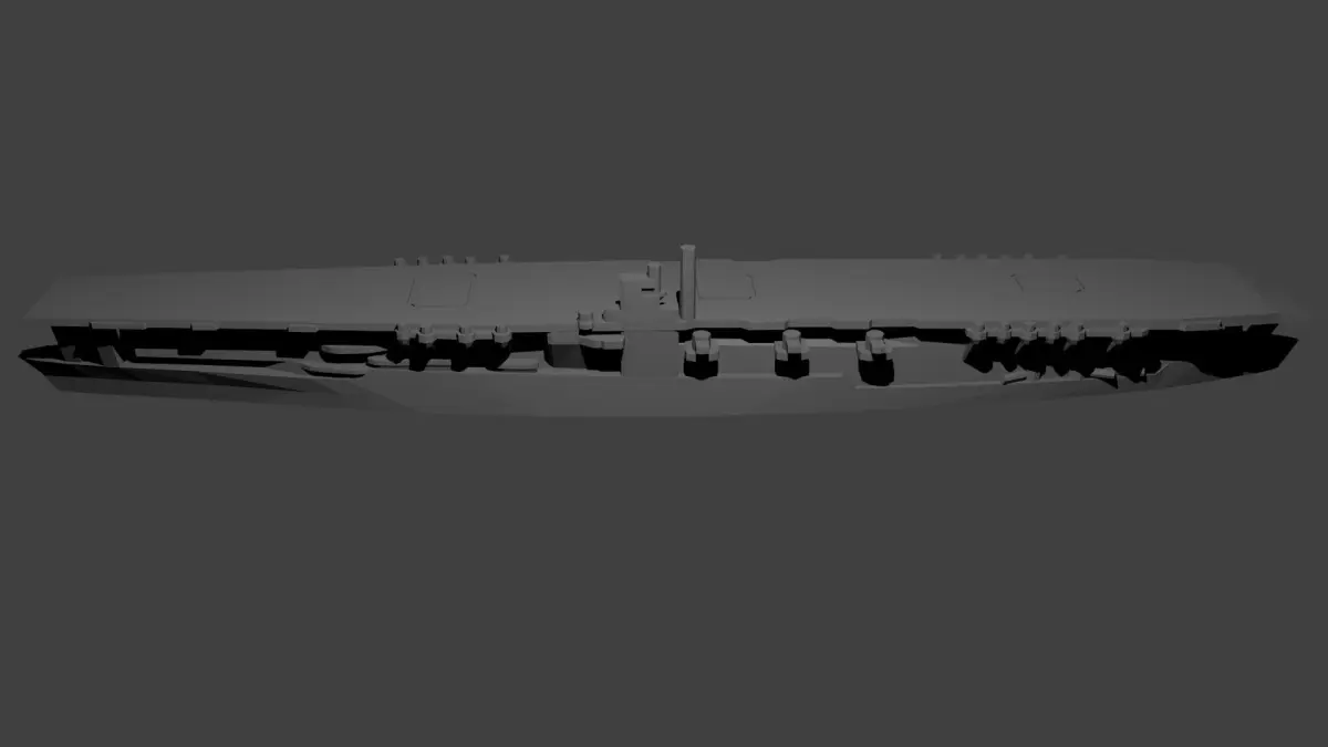 1/1800th scale Akagi Aircraft Carrier model. Certain elements not to scale.