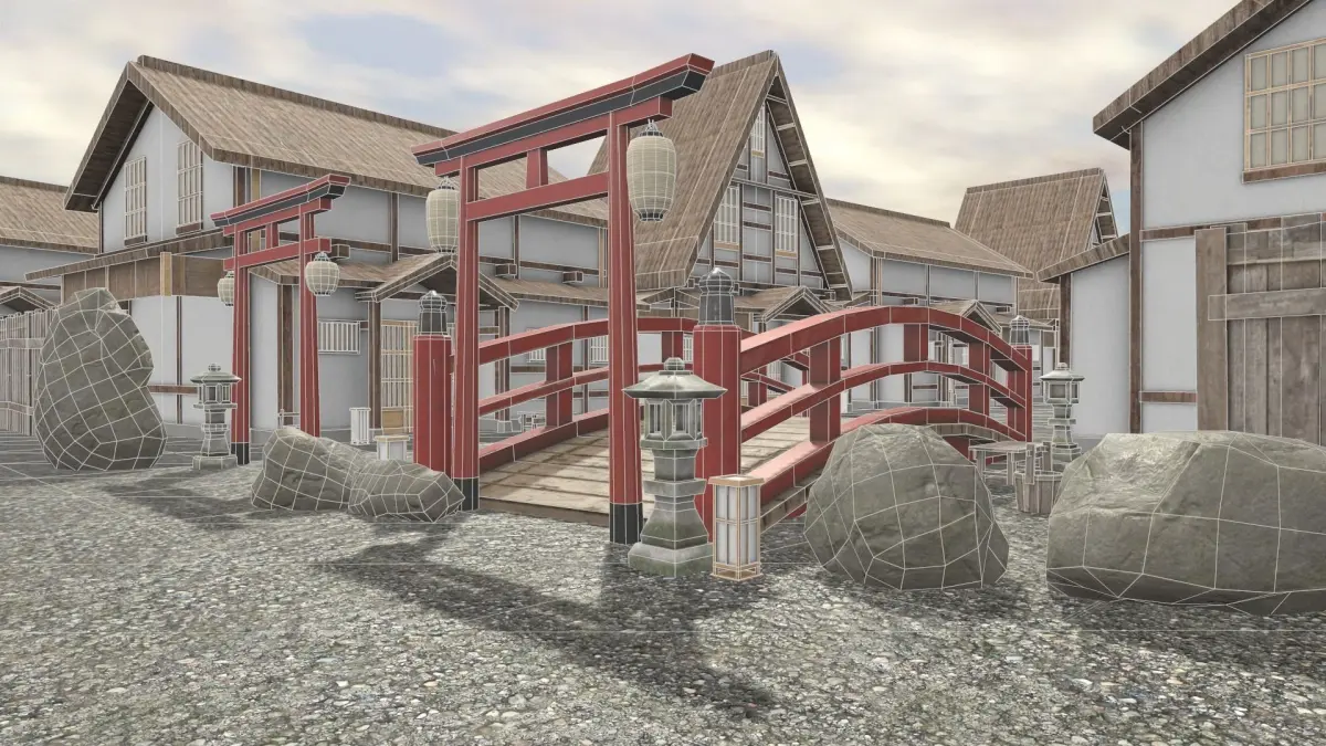 Assets includes5 houses5 stones4 wooden lanterns4 stone lanterns3 fences variation2 gates2 paper lanterns2 buckets2 wooden chairs2 bridges1 gravel