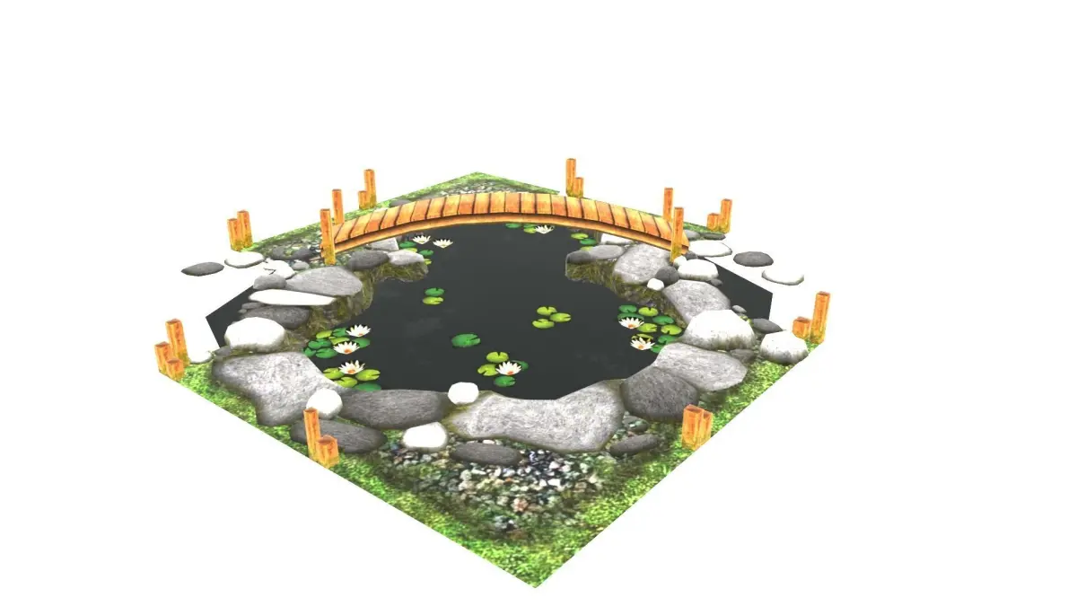 Small bond/Lake with a wooden walk , Asian stylelowpoly modelmedium qualityone object2k diffuse textureRendered with blender evee