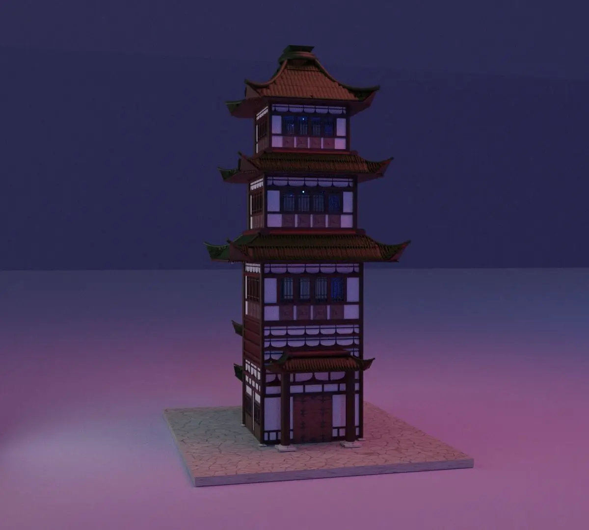 Japanese building architecture with all textures. The house has windows made of glass. Inside the house is completely empty.I can finish the house inside or change what you want, just write me about it. Hope you enjoy it!