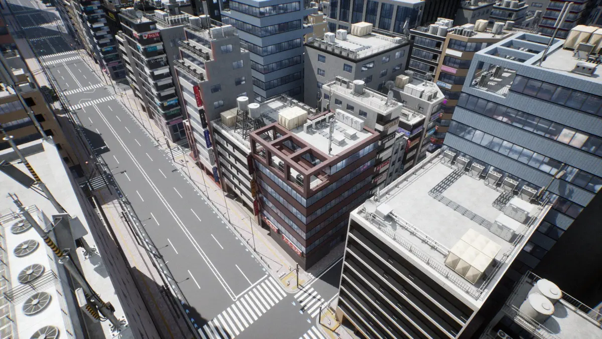 Includes over 60 unique buildings and 10+ high-rises as well as 50+ road pieces and hundreds of props used to decorate the scene from the street level to the rooftops. In total there are over 1300 buildings and over 4km of roads in the scene.