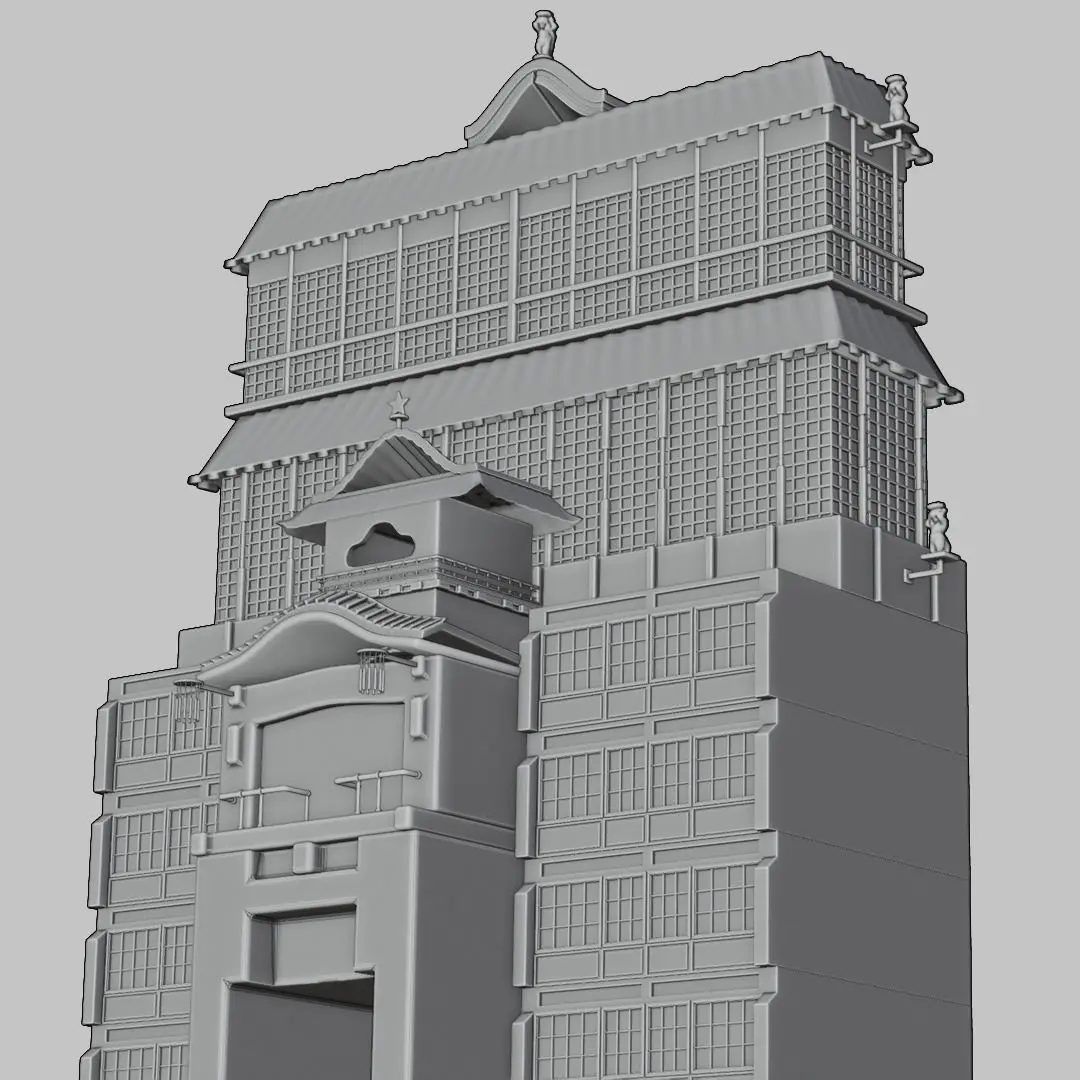 The dojo is a five-story building with a classic concrete and plaster framework. The exterior walls are adorned with a combination of plastered panels and traditional shoji-looking windows, providing a semi-translucent barrier that allows natural light to filter through. *This model has no textures or materials. Click the link below for the complete model.*Verts: 140,000Faces: 150,000Tris: 290,000