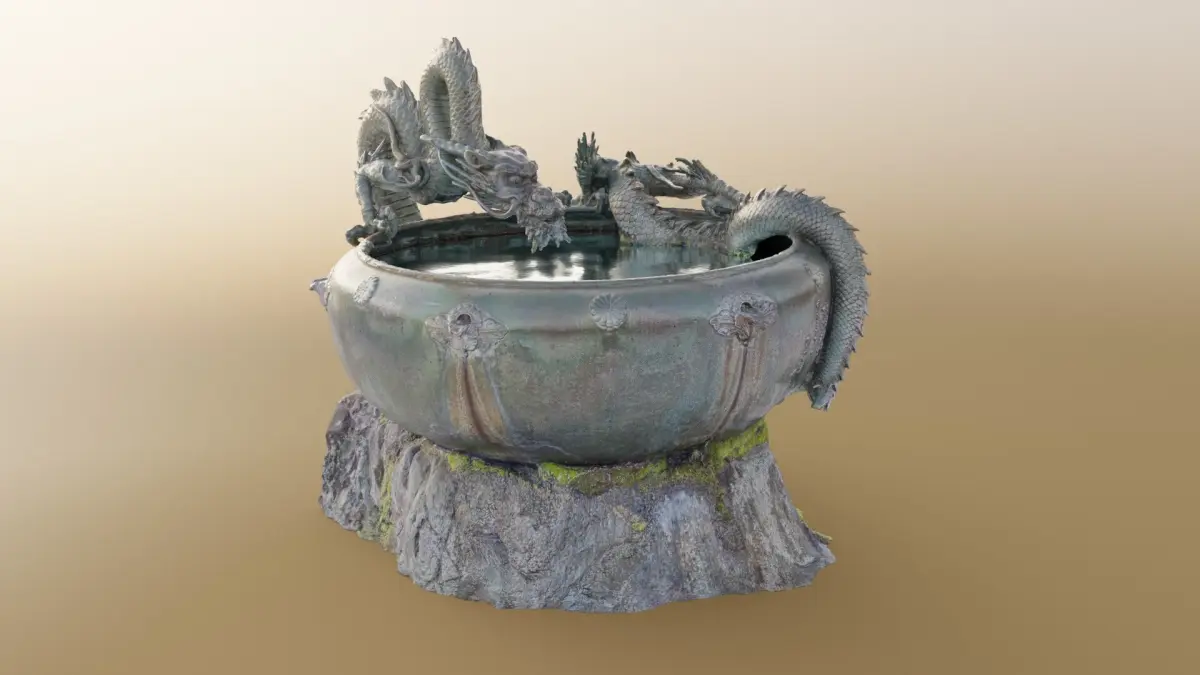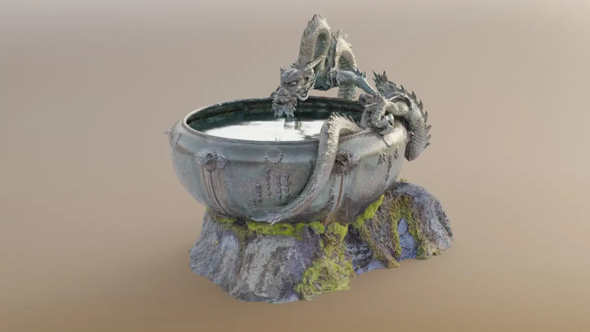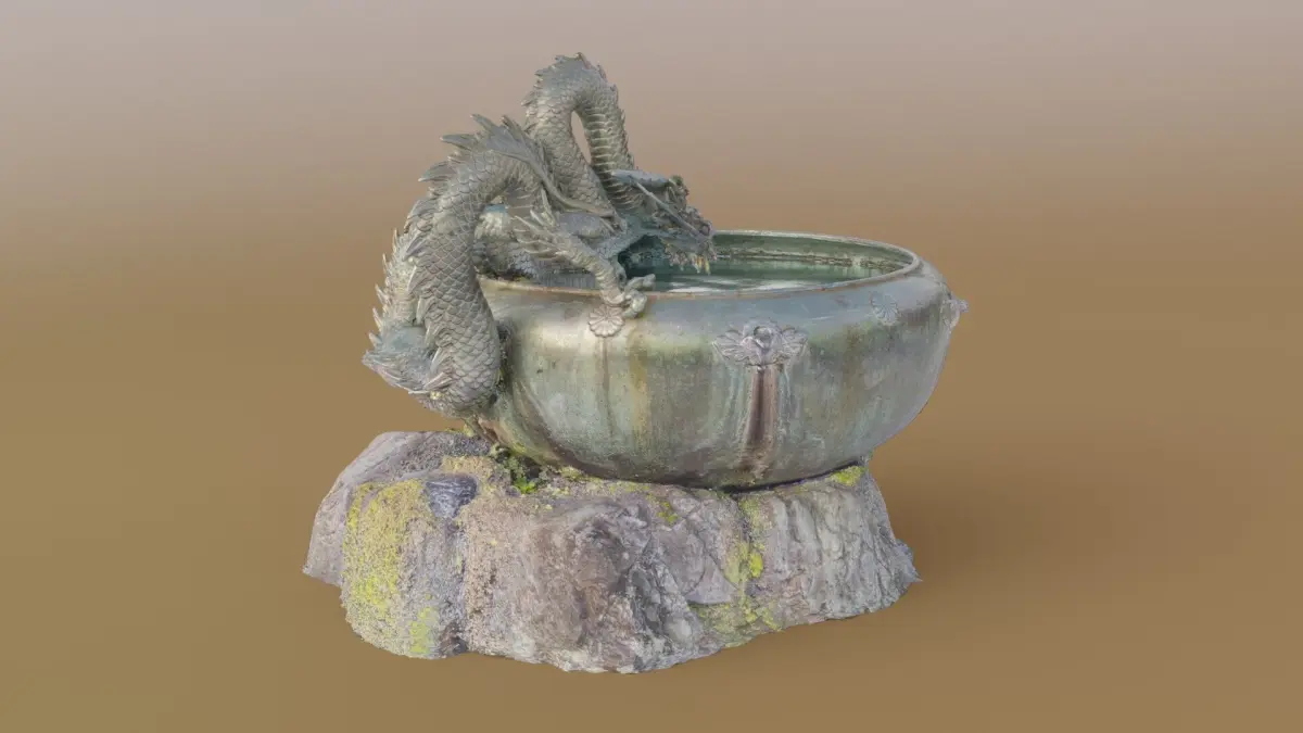 Highly detailed, realistic PBR 3D model of a traditional Japanese dragon water fountain.