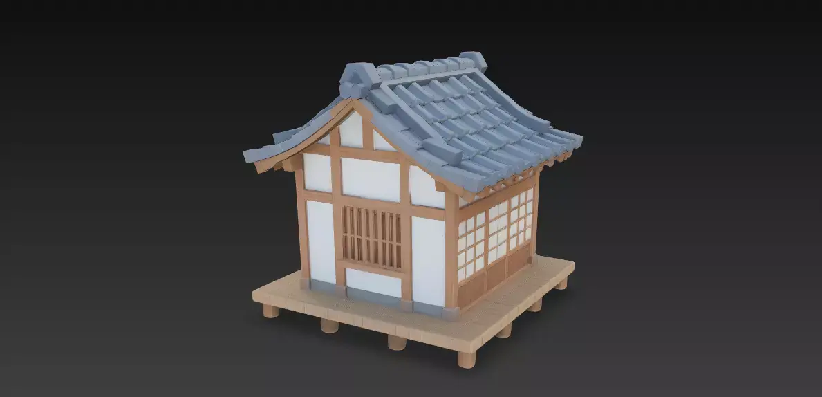 A high‑quality Stylized Japanese House designed for games, animation, and real‑time environments.This model features clean low‑poly geometry, a curved tiled roof, wooden beam structure, shoji‑style windows, and stylized materials that fit perfectly into Japanese, Asian, fantasy, or RPG‑themed worlds.