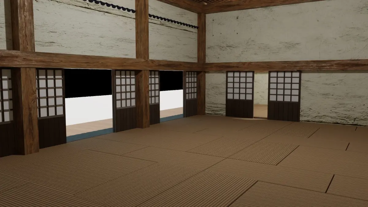 This Japanese dojo is a wooden building inspired by a old Japanese series. Apart from the series, Its construction is inspired from many authentic original Japanese constructions.it has the traditional sliding doors to get inside the dojo and its two side rooms that can be used for storage or welcome guests. it also hat the traditional walk around made out of wood that is shielded by the overhanging roof that many old Japanese buildings tend to have.the dojo and its side rooms are covered by tatami mats.