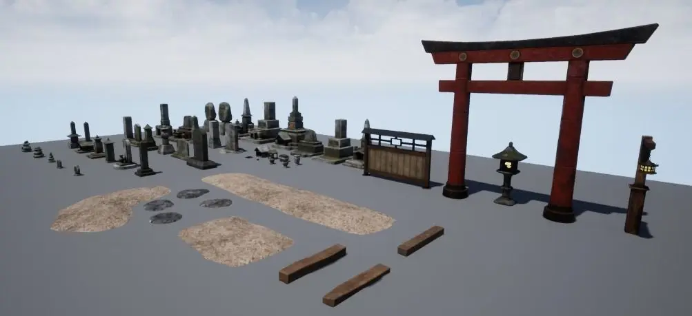 Grave stone 01Grave Stone 02Light postLantern PillarFenceTorii (Japanese Gate)