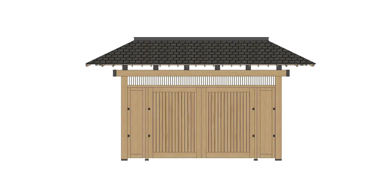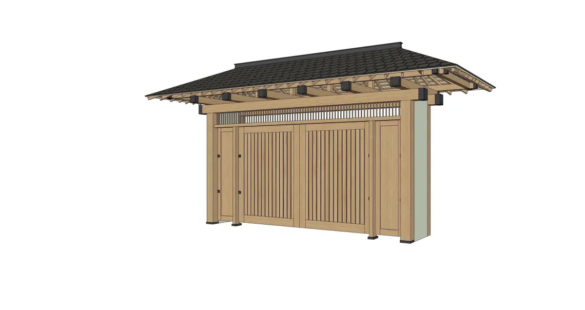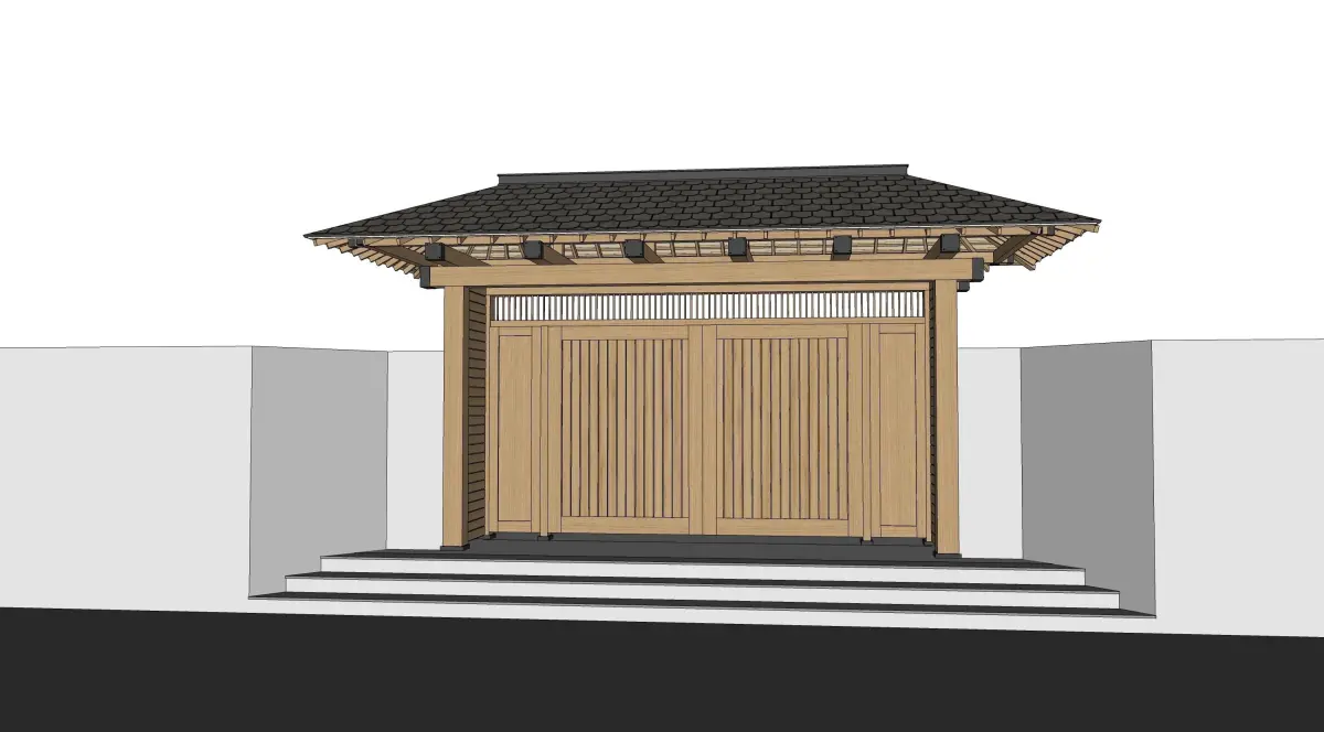 The Japanese wooden gate is modeled using Sketch Up software.