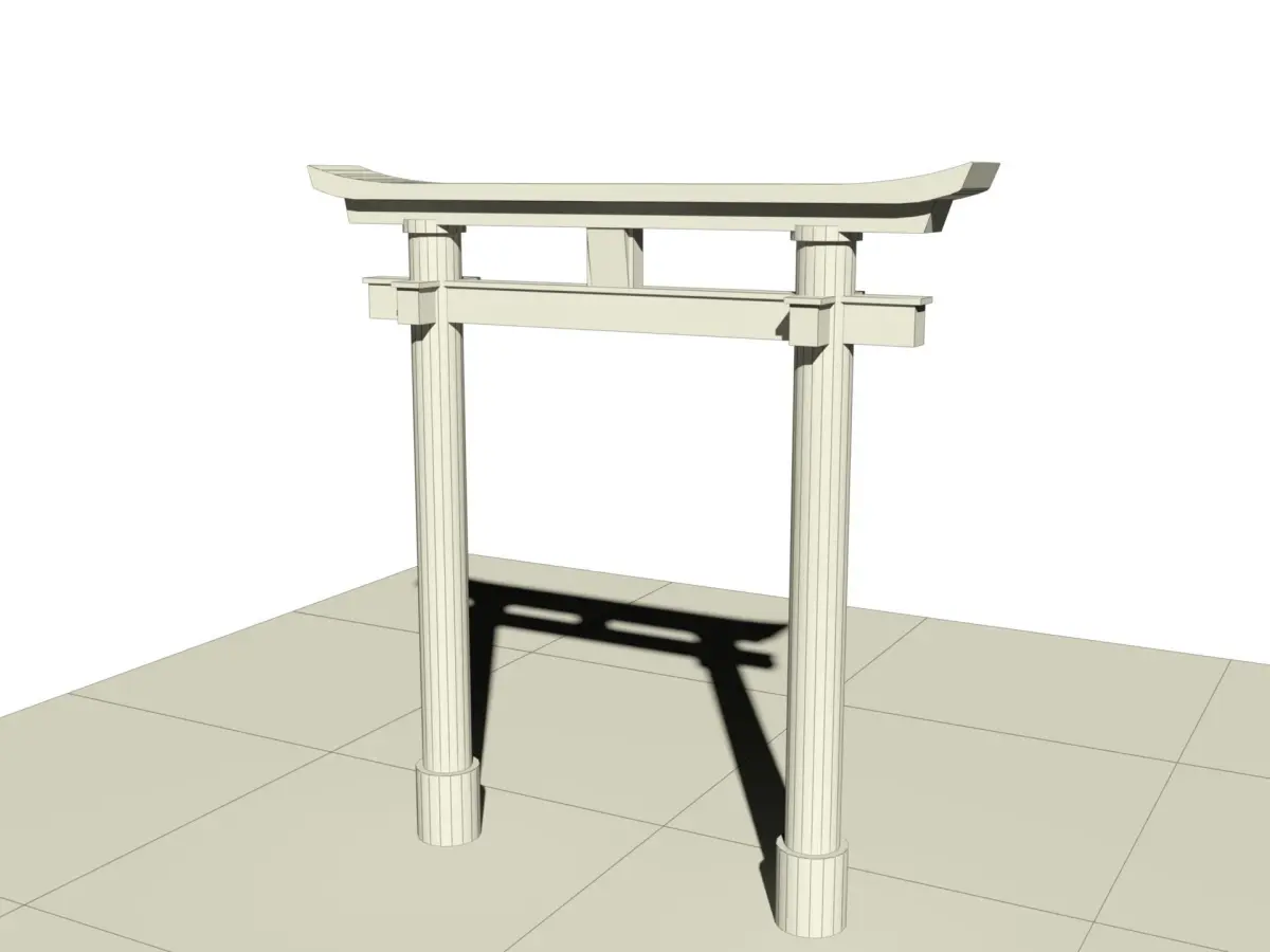 Asian traditional gate. Model of the wooden gate inspirated by japanese architecture. Exterior scene. The model was assembled as accurately as possible so that it's easy to remove or add parts in case of need. Other formats - fbx, obj. The mesh allows you to easily build up the additional details, edit geometry.