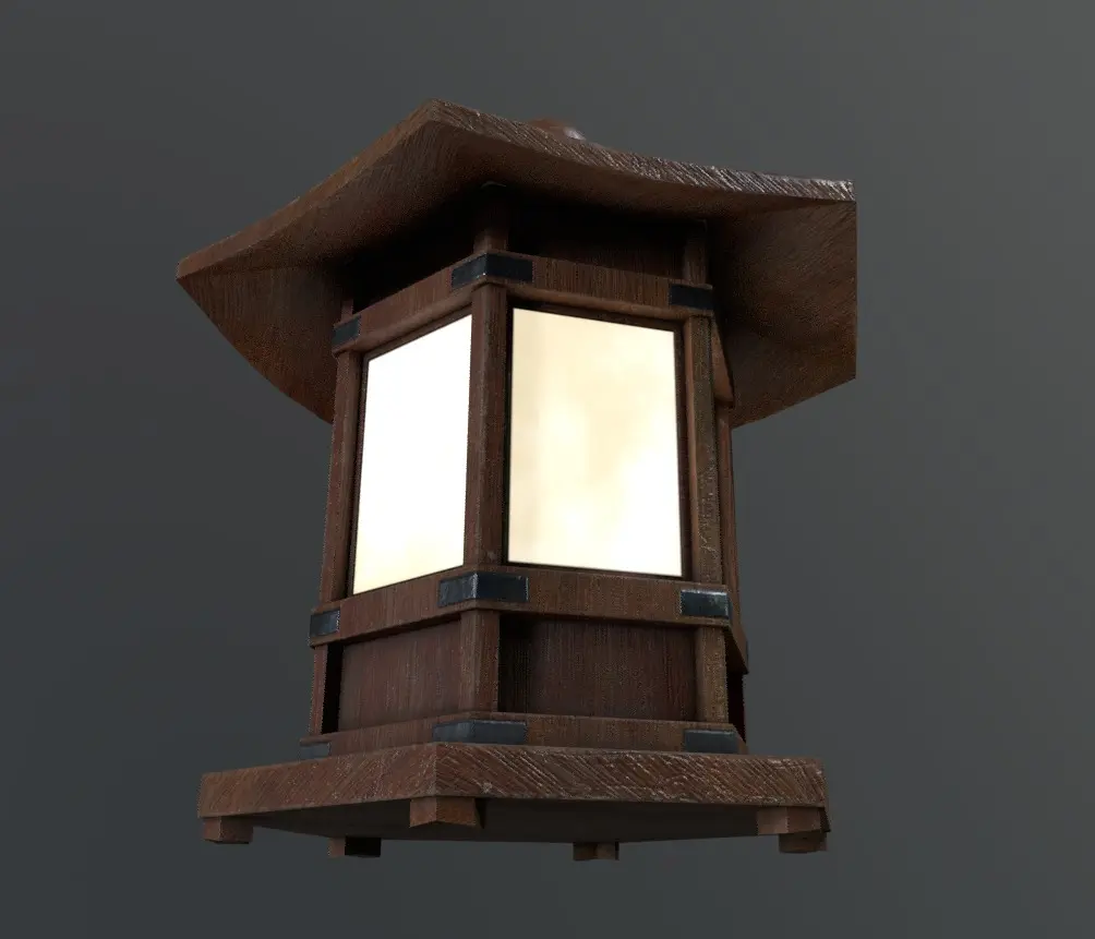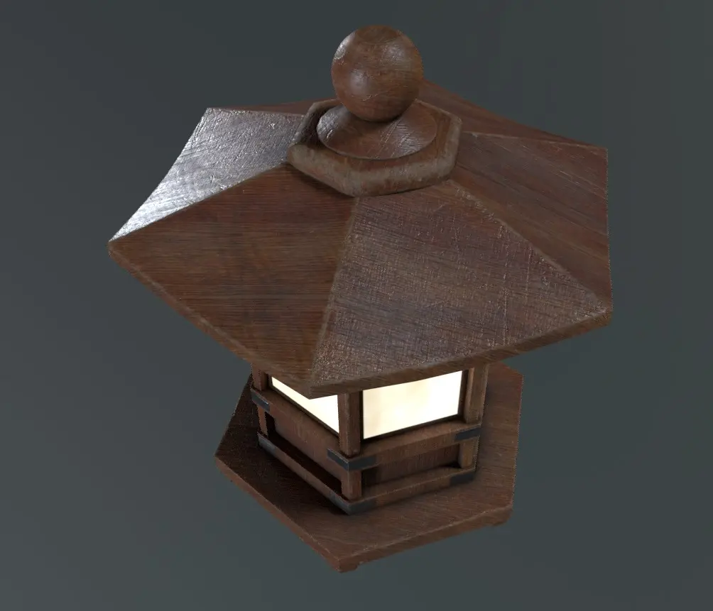This is a Japanese-style wood hanging lamp. It will work well with any old-style Japanese environment. It works with any game or rendering engine, including Archviz. Other file formats are available upon request. The textures are in PNG format. The file formats are fbx, obj, and stl. The lamp has 4600 Tris and PBR Textures.