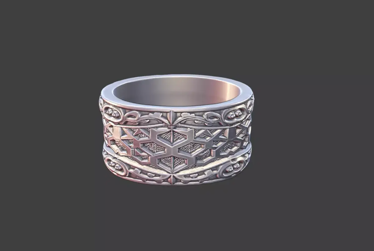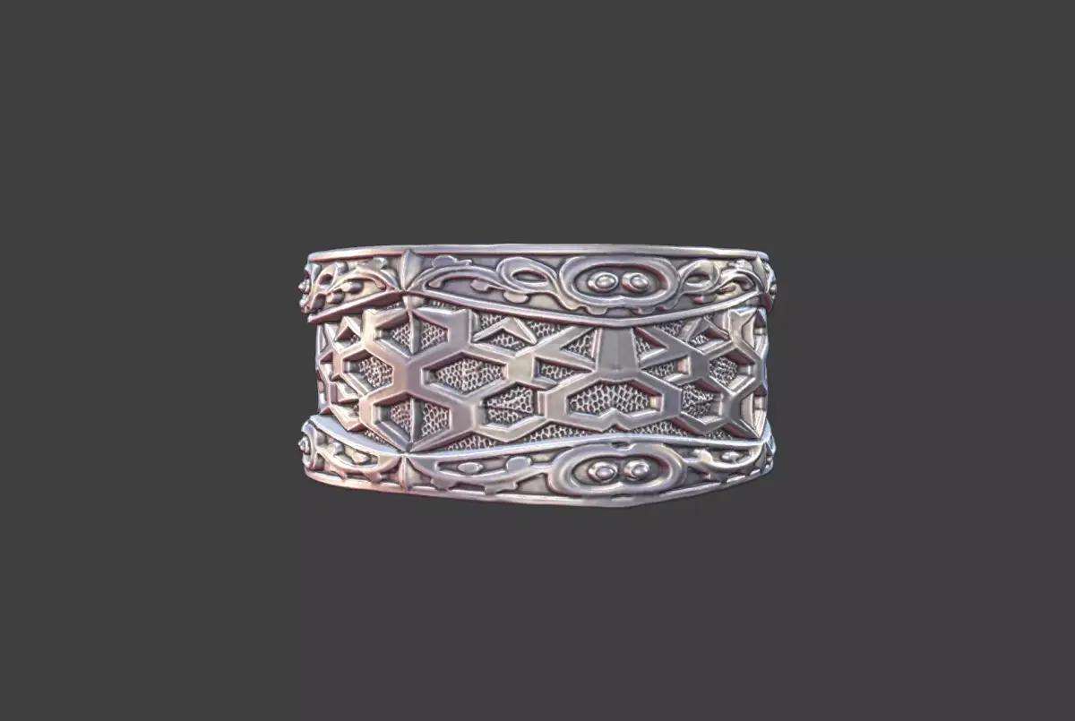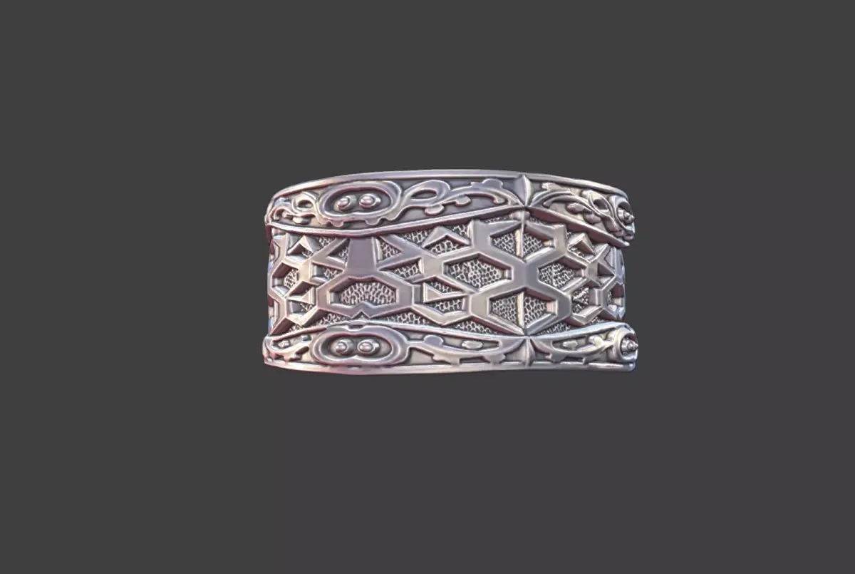 The model is professionally prepared for 3D printing, casting, and jewelry production, with clean topology and well defined surface details. Each hexagonal element is sculpted to maintain clarity and depth after casting, ensuring a refined and durable final result in silver, gold, or other precious metals.