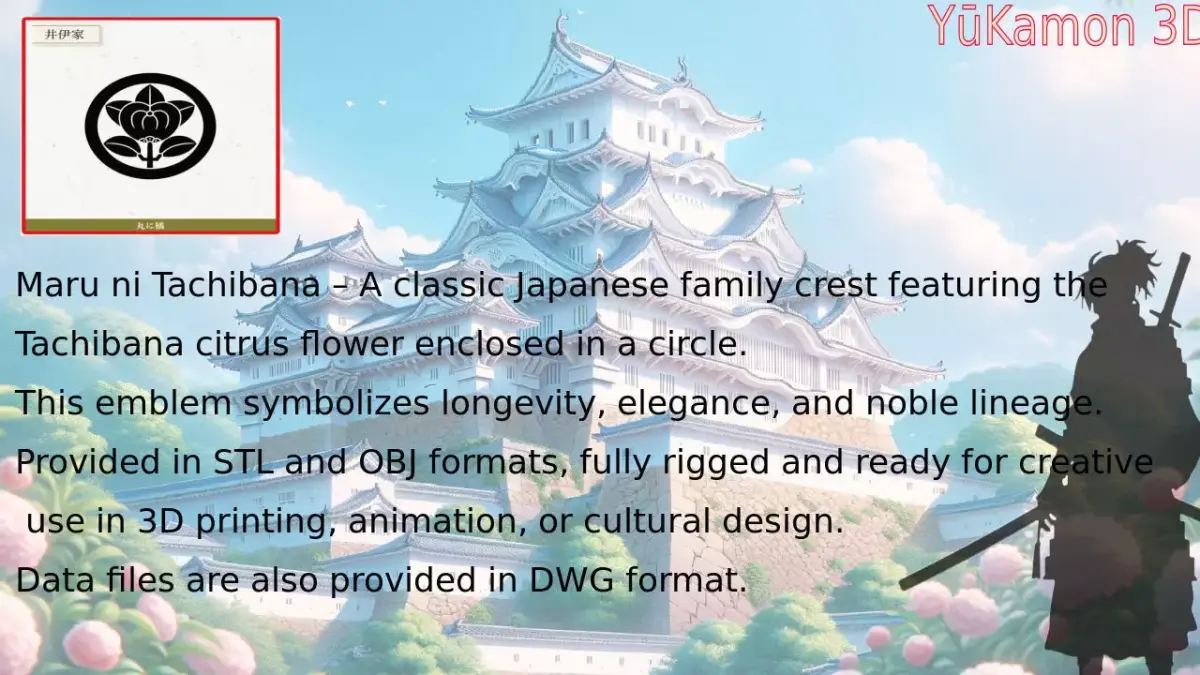 This is a high-quality 3D model of the traditional Japanese family crest “Maru ni Tachibana.”