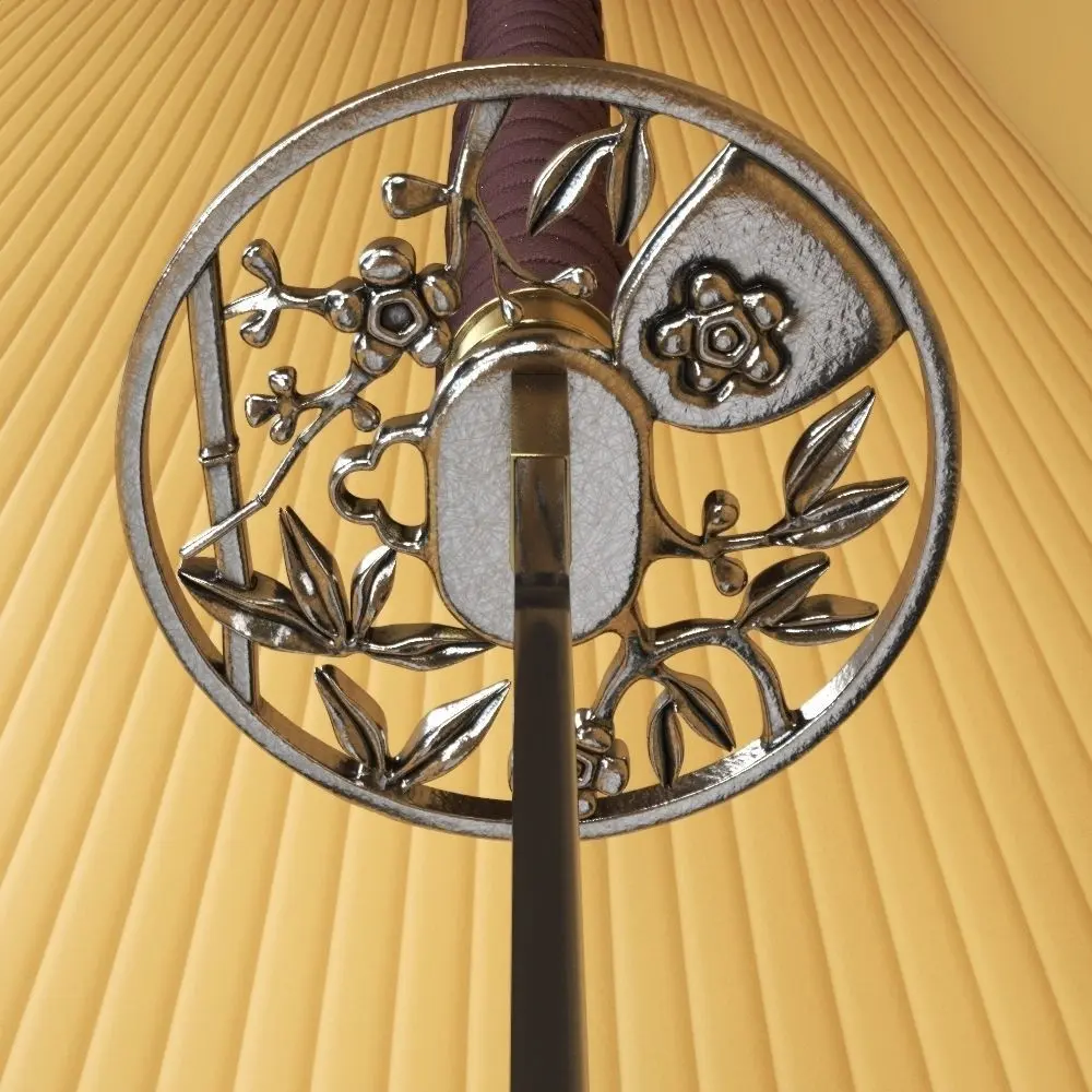 Hi! High poly model Japanese katana. The scene includes: