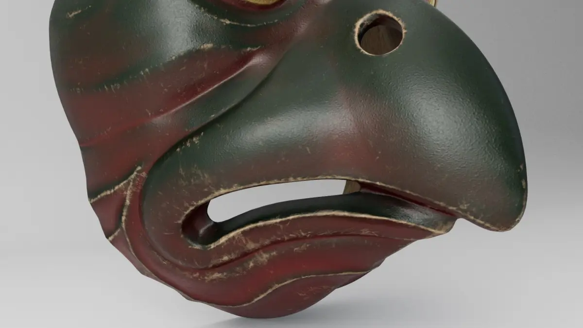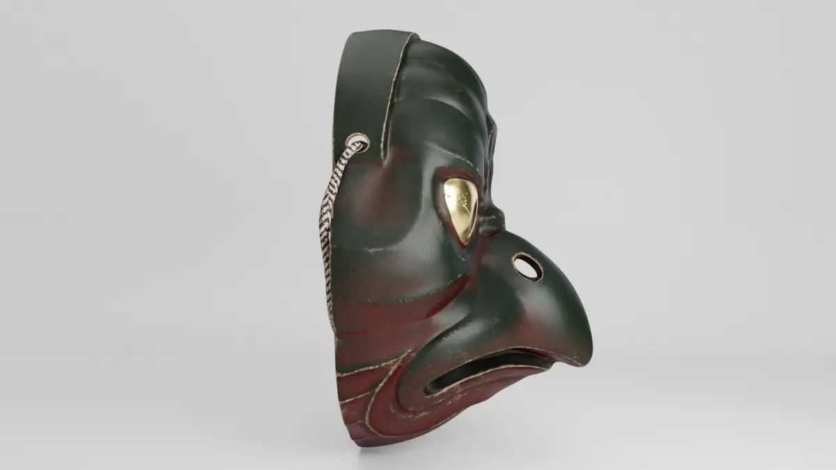 The Korobase mask is a traditional Japanese mask used in Bugaku, an ancient form of Japanese court dance and music. Originating from the Heian period, these masks are characterized by their intricate designs and are used in performances that depict various historical and mythical stories.