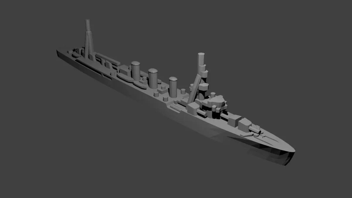 1/1800th scale Kuma class cruiser model. Certain elements not to scale.