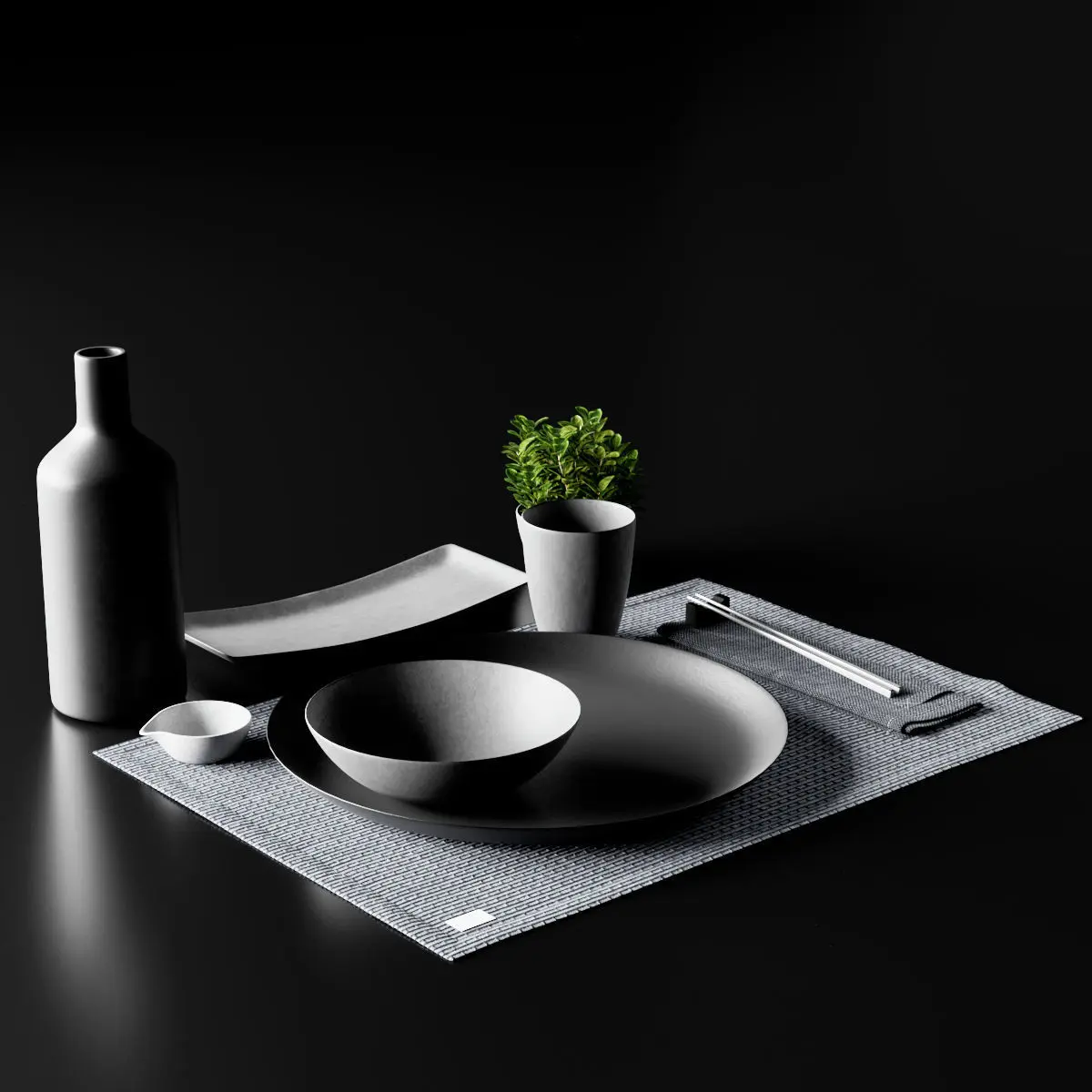 Japanese minimalist Sushi set with Plant from Chalk and Moss 3D model