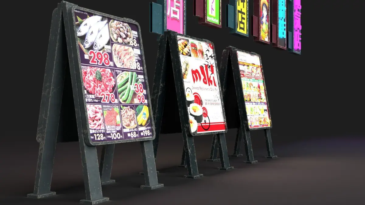 Low poly signs pack with PBR textures 2048 separated into two materials: