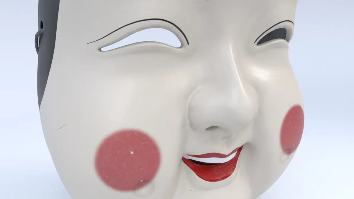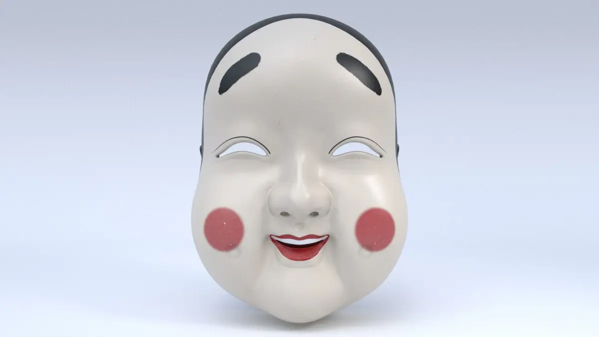 Realistic Otafuku Noh mask mask. Perfect for add realism, details in your scene and for close-up.