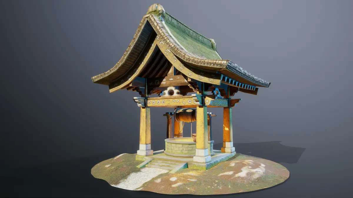 This is a Japanese Old Temple or Shrine Holy water well, inspired 3D model. a high-quality PBR rendered and textured Old Japanese fantasy 3D model can be used in video games. on PC and consoles.