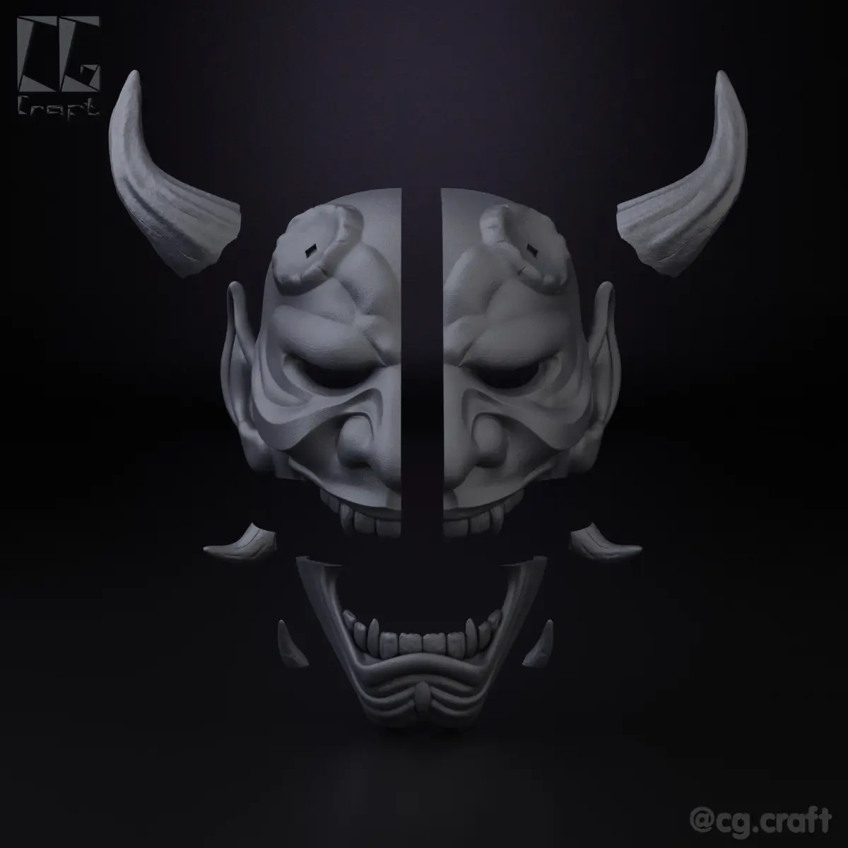 Wearable Oni mask. Attached several versions mask, as 1 piece and as several parts for easier printing.