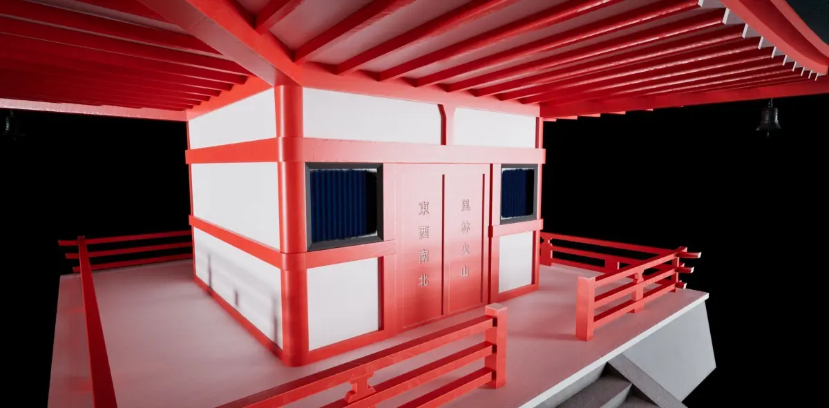Japanese pagoda inspired by Chureito pagoda near Mount Fuji. Made few changes to reduce poly count. Model made with Blender and textured with Adobe Substance painter. 2k textures are applied by default to all assets. Should use 1k textures on bells because theyr small. First floor windows are transparent. To remove transparency change from Material M_Room_Level1 Blend mode from Masked to Opaque. In Unreal Engine bells looked too shiny so i unlinked roughness map and put Roughness manually to 0.4. Images with black background are taken in Unreal Engine. Images with gray background are taken in Adobe substance painter.