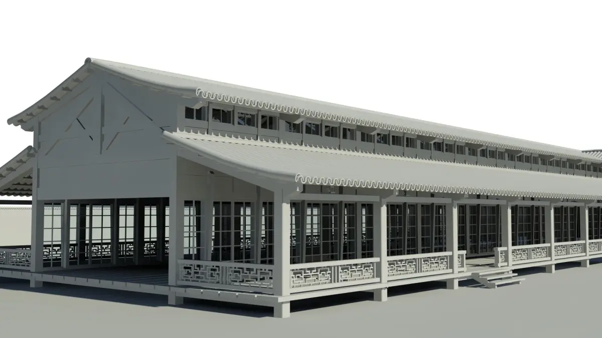 Model of the wooden pavilion inspirated by japanese architecture. Exterior scene, interior is created like a long wooden hall The model was assembled as accurately as possible so that it's easy to remove or add parts in case of need. Other formats - 3ds, fbx, obj. The mesh allows you to easily build up the additional details, edit geometry.