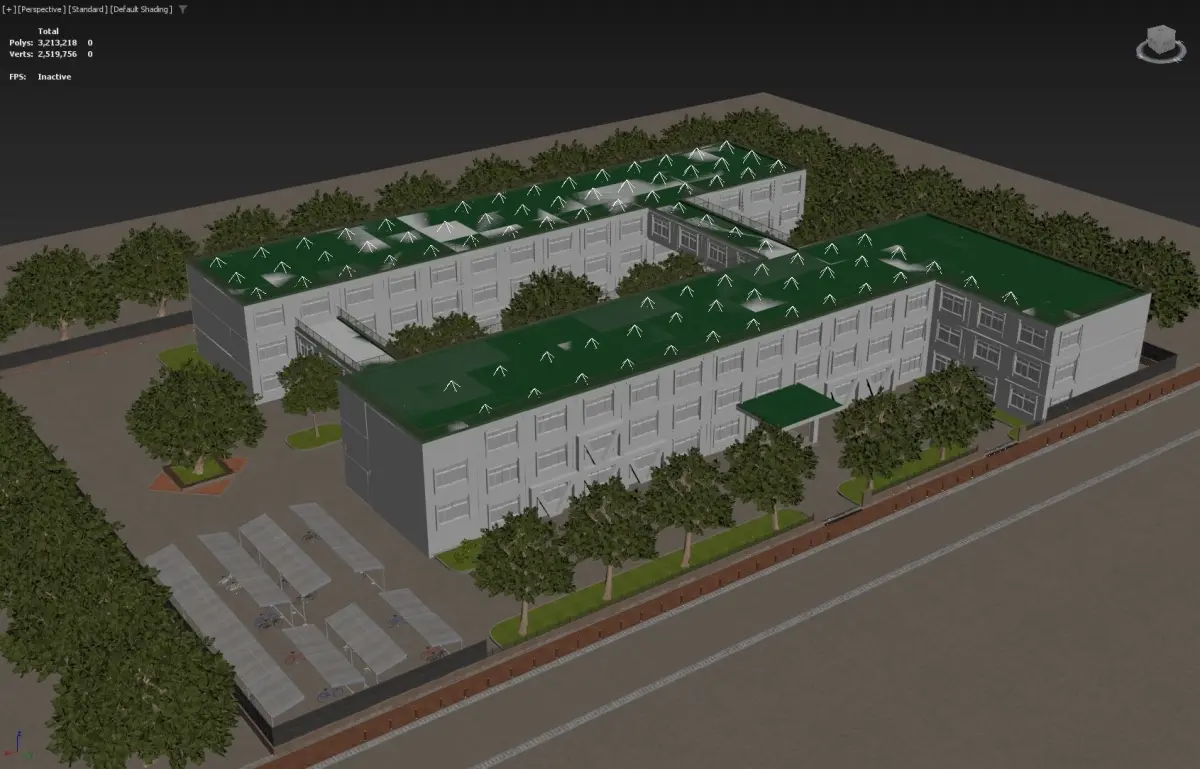Included in this scene are modular pieces for building hallways and classrooms, along with versatile floor and roof components. Additionally, you'll find an assortment of trees, shrubs, and props to add depth and realism to your scenes.