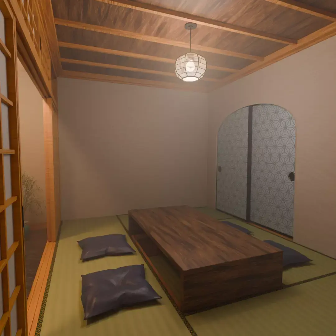 This product is a “Japanese Room” 3D model created in Blender.Experience the texture of tatami mats, soft lighting, and the warmth of wood in the pillars and flooring.The unique beauty of Japanese architecture has been meticulously recreated.