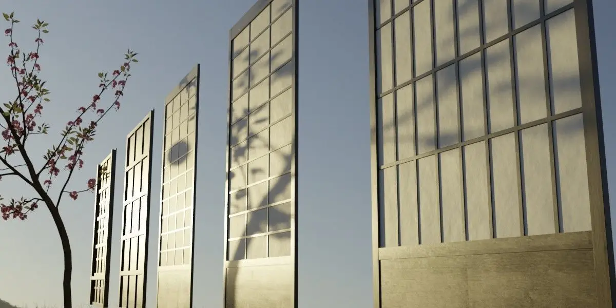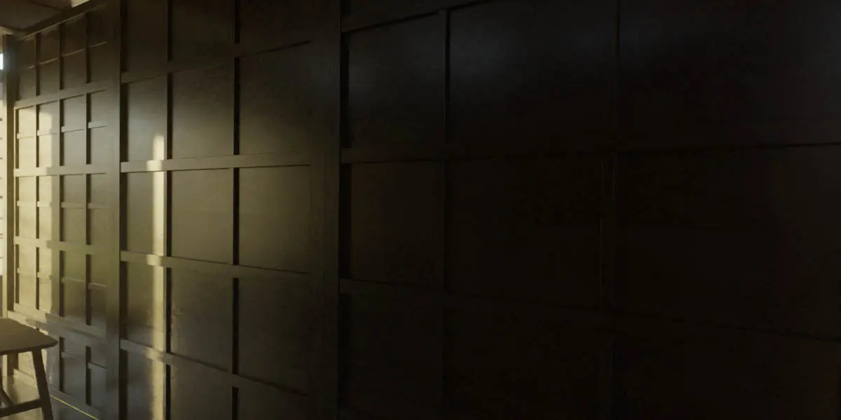 the secret of the beautiful shoji door is the translucent window paper. The material node shader is built to interact with light and shadows, in this way beautiful shadows of shapes and motifs will be displayed at window.