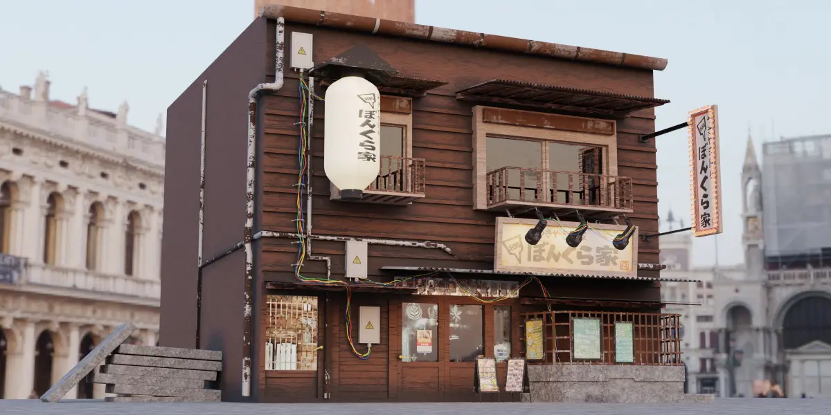 This is a Highly Detailed Japanese shop, all the elements that you see are actual 3d objects,