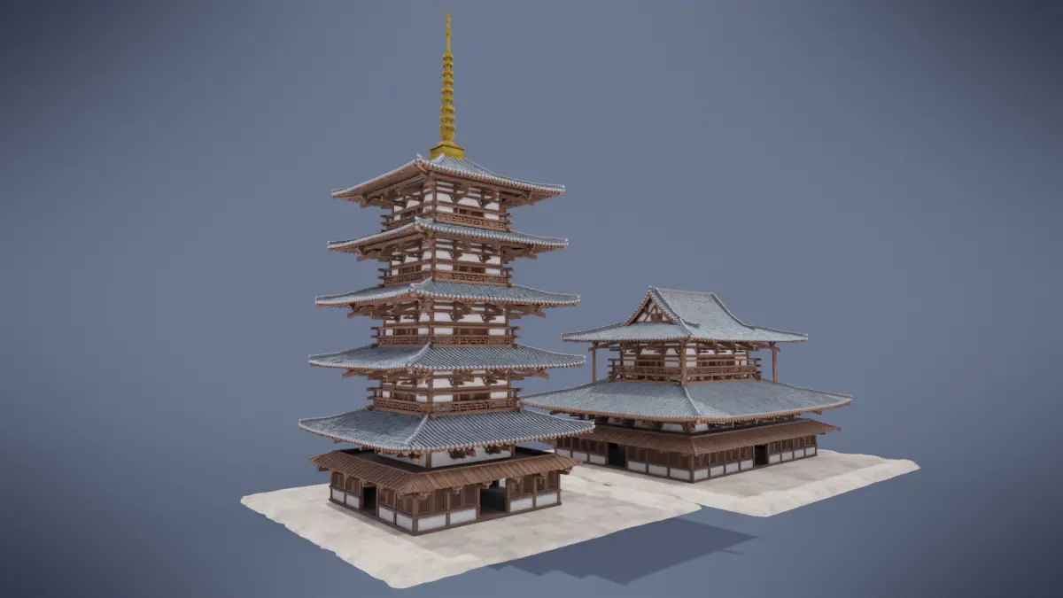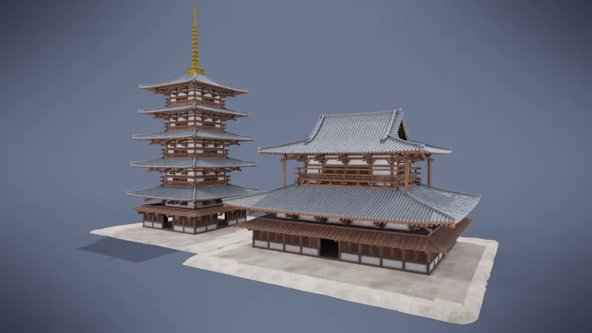 When creating the assets, the Buddhist temple Hōryū-ji was used as a reference.