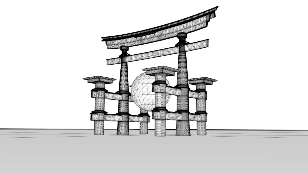 this is a 3D model of the famous Itsukushima Shrine in japan the shrine gate or torii is made on Itsukushima island you can read more about the shrine in this wiki https://en.wikipedia.org/wiki/Itsukushima_Shrine
