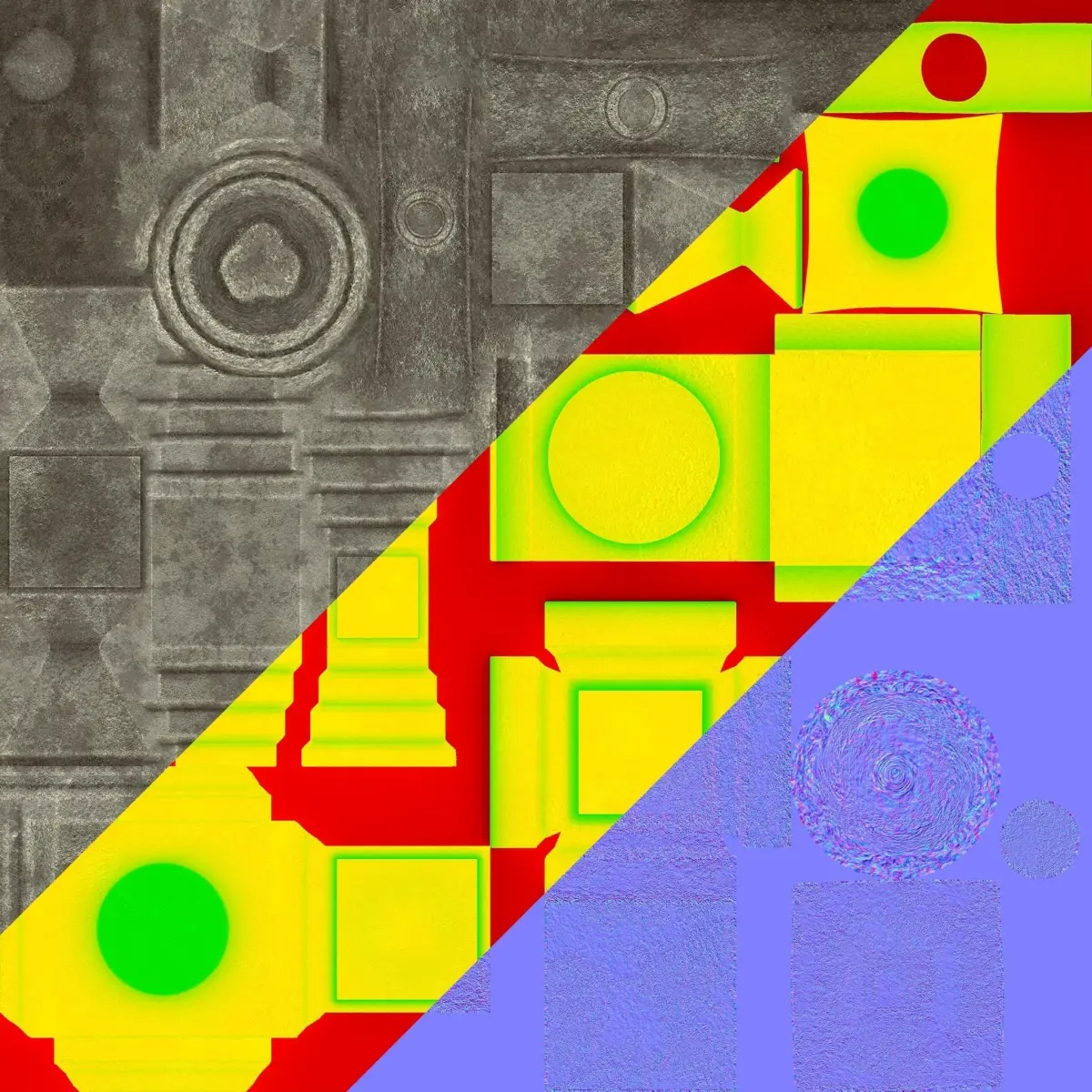 The textures includes Diffuse Map, Metallic Roughness Occlusion Packed in the rgb channels, Normal Map directx(you have to flip the green channel when using opengl).