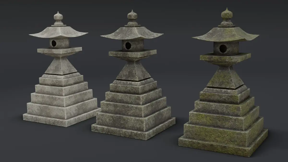 A Japanese Stone Lanterns with 3 different 4k texture variation each.