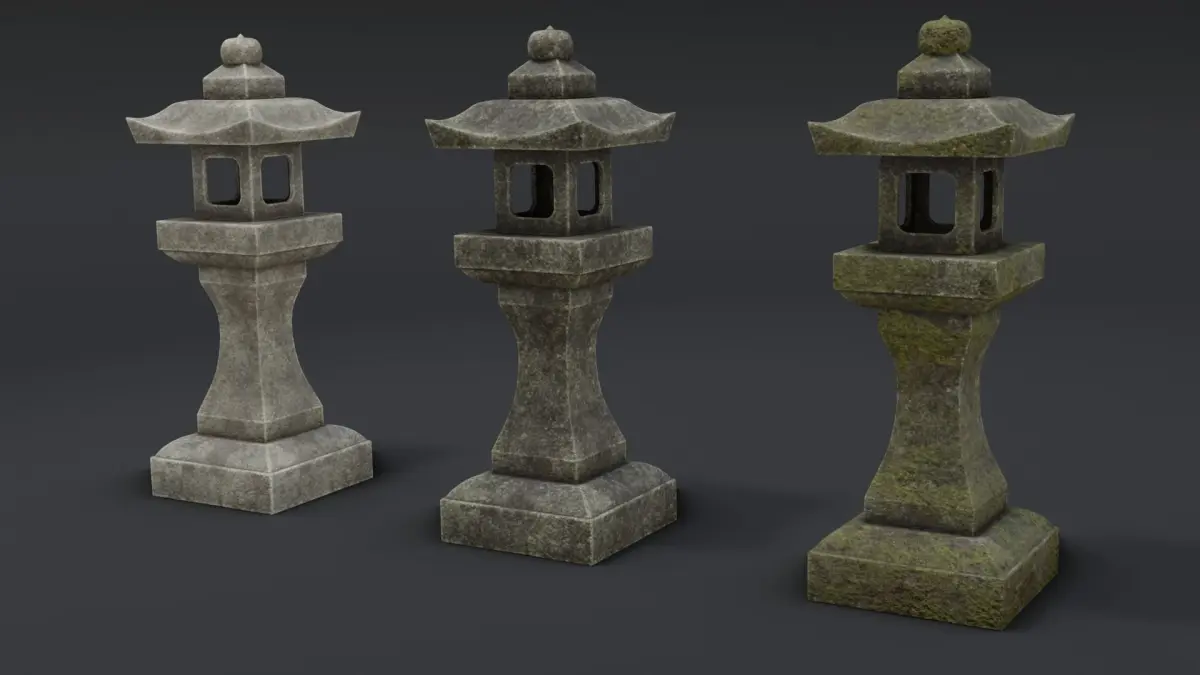 A Japanese Stone Lanterns with 3 different 4k texture variation each.