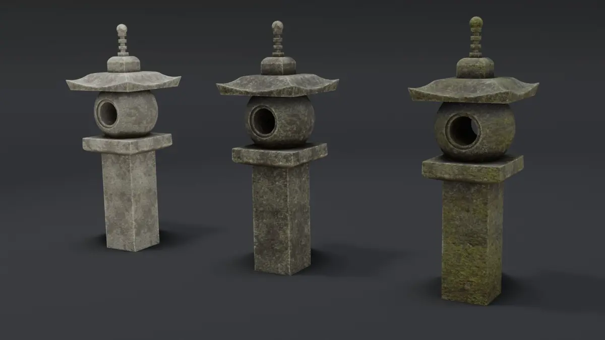 A Japanese Stone Lanterns with 3 different 4k texture variation each.