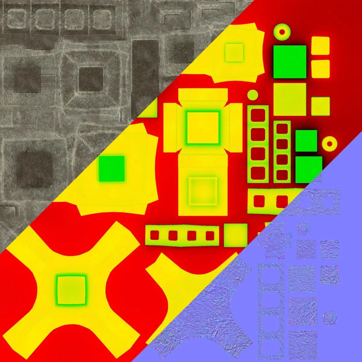 The textures includes Diffuse Map, Metallic Roughness Occlusion Packed in the rgb channels, Normal Map directx(you have to flip the green channel when using opengl).