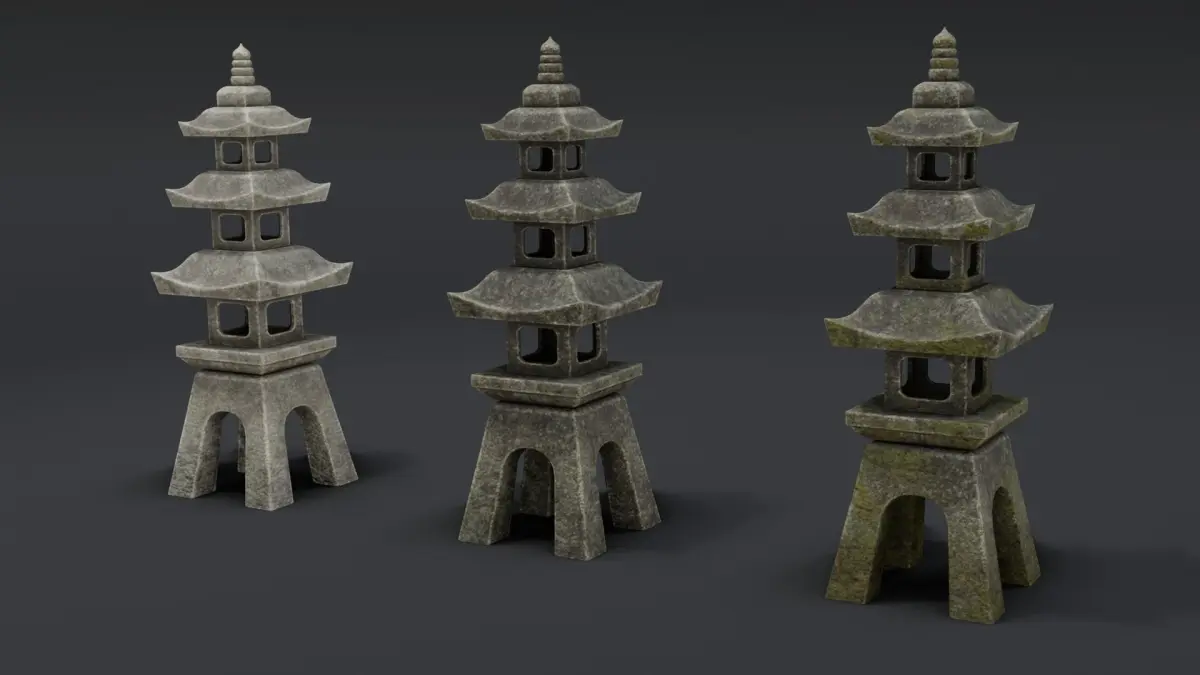 A Japanese Stone Lanterns with 3 different 4k texture variation each.