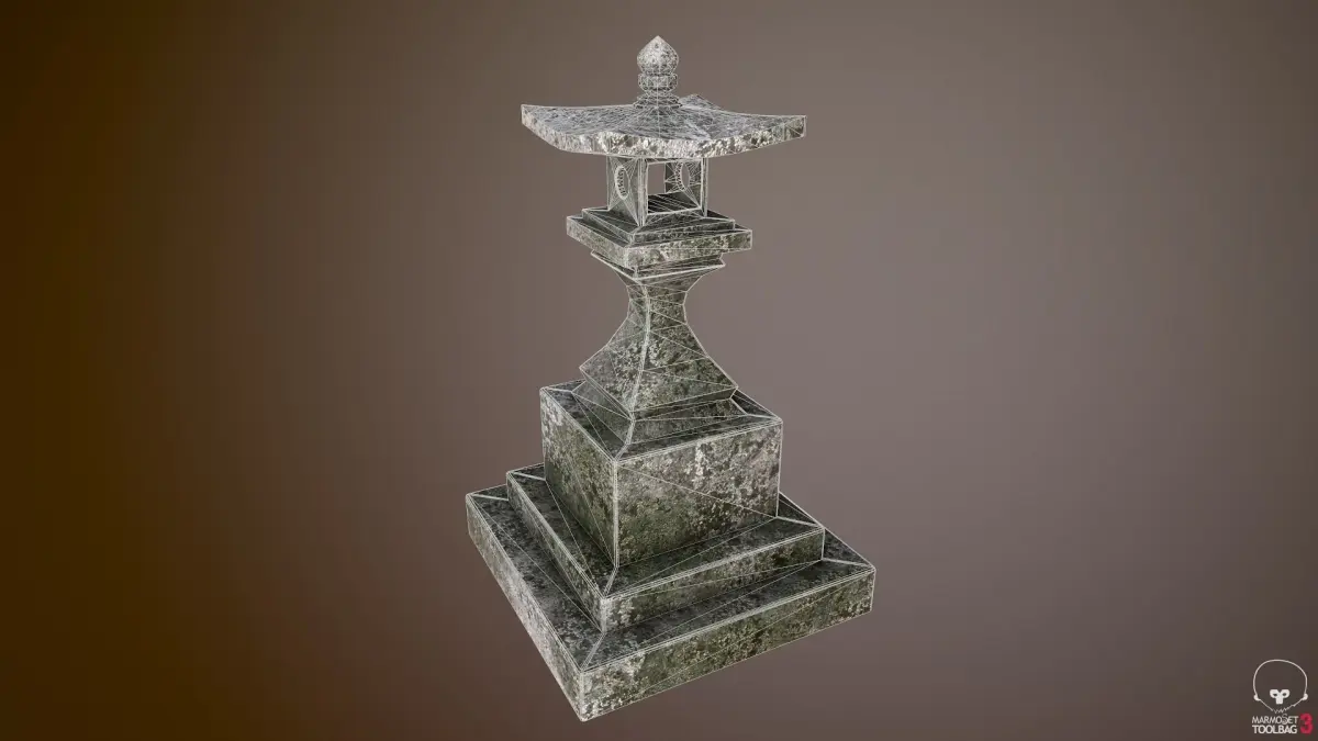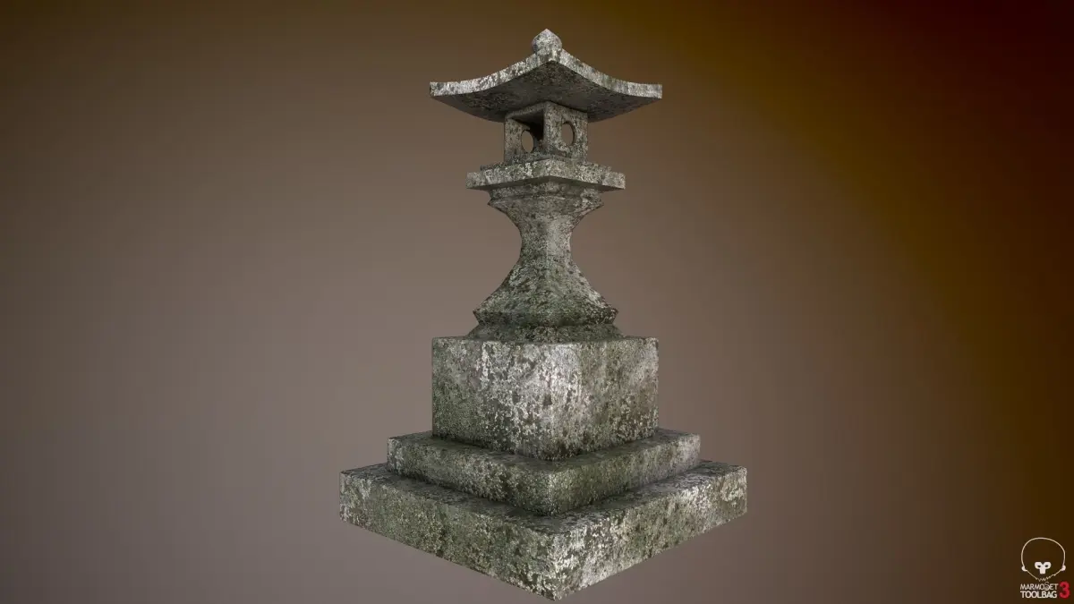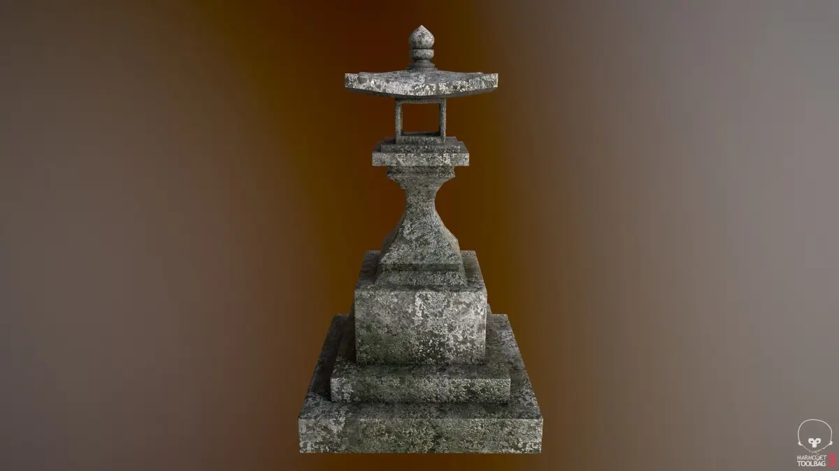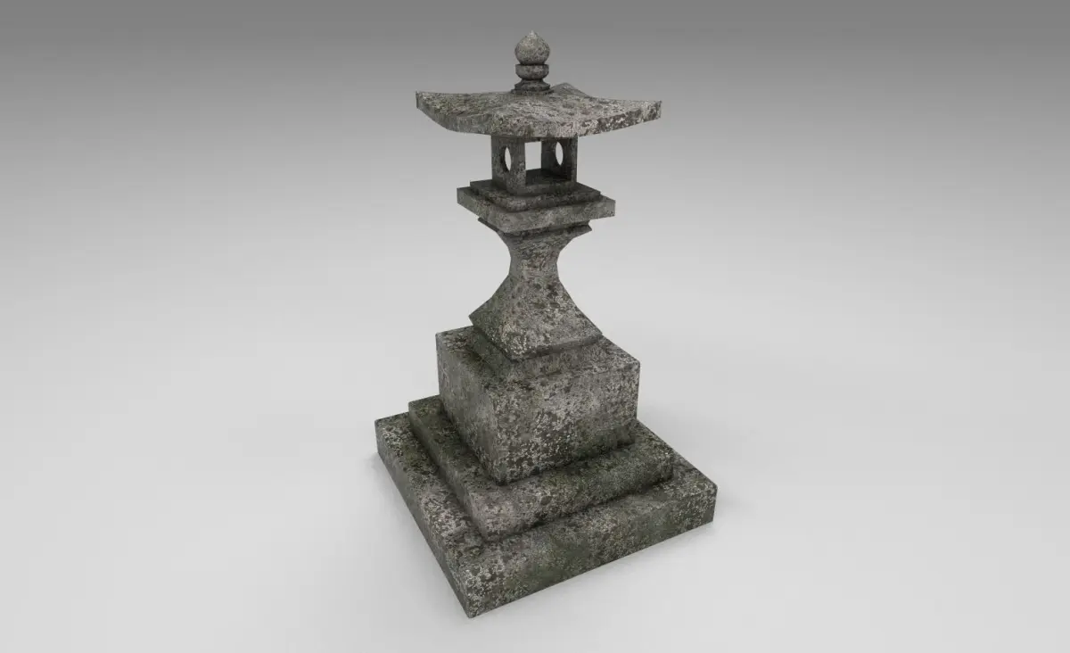 A mossy stone japanese lantern, perfect for zen garden scenes or japan environments