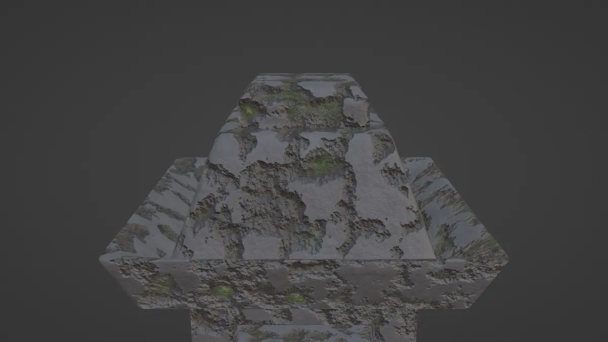 This model was created in a way to make it look like it's made of cobblestone with bits of moss. I found of a tutorial on how to creat this kind of material. Preview images were rendered with Blender Eevee and Cycles.