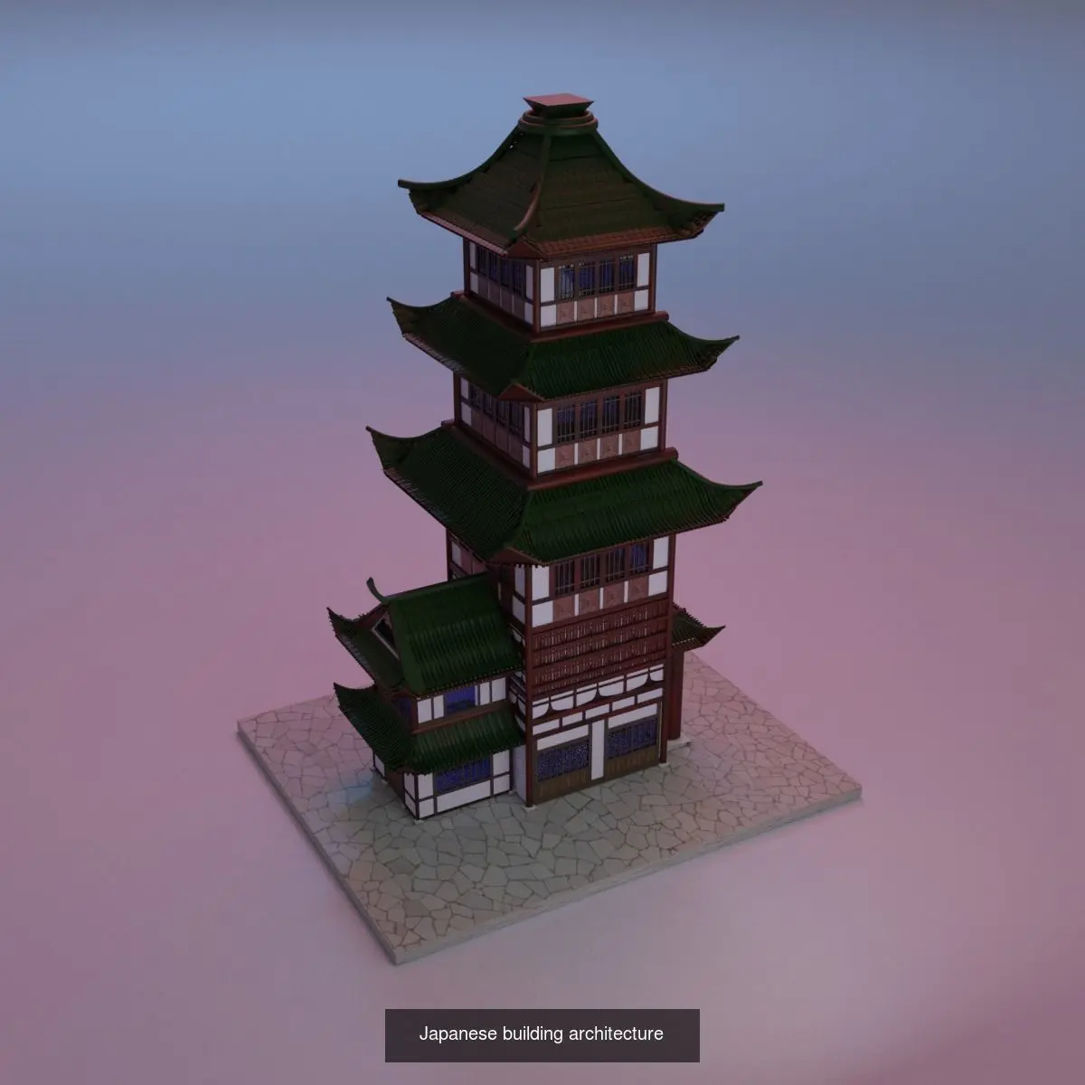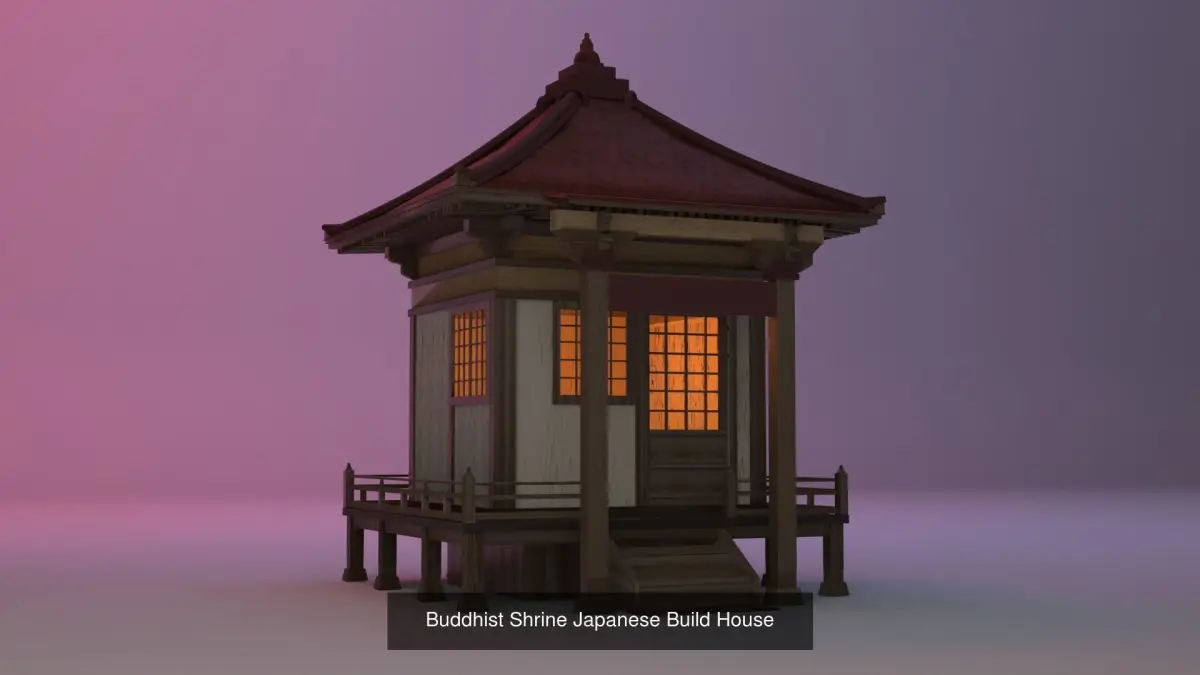 - Fureai-Kannon-do hall Japanese Garden Structures Pavilions Low-poly