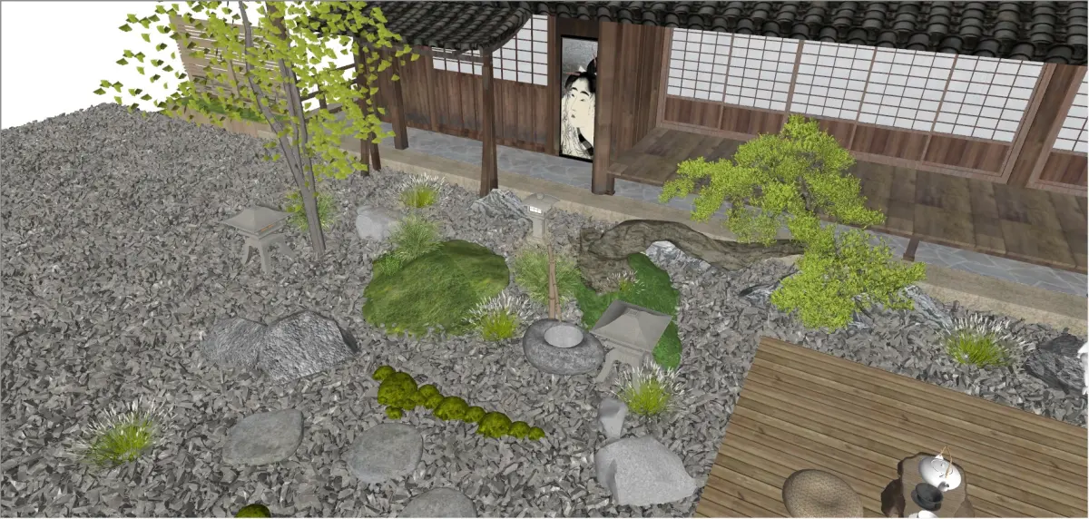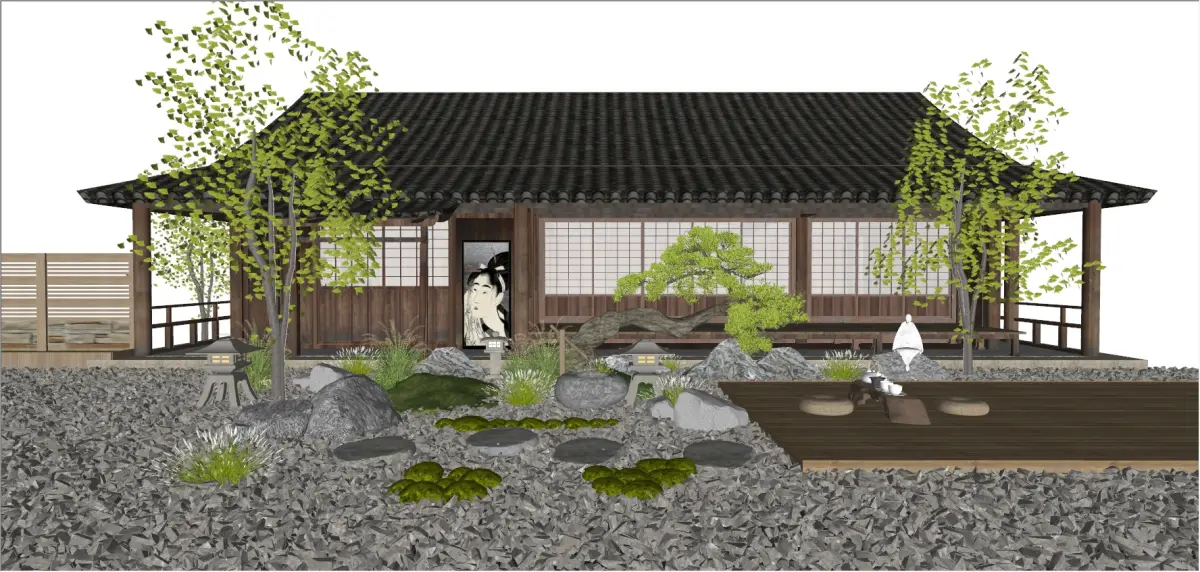 Product/Service Introduction:Replicating the classic Japanese - style courtyard, with traditional architecture as the core, matched with dry - landscape, stone lanterns, and shaped bonsai, restoring the Japanese - style charm. From gravel paving to plant selection, it creates a quiet and ancient Zen atmosphere, suitable for high - end homestays, private residences, and cultural experience spaces, conveying pure Japanese aesthetics.Applicable Scenarios:High - end homestay courtyard creation, private residence garden design, Japanese - style cultural experience hall landscape, art hotel courtyard matching, Zen teahouse outdoor spaceIt was created with SketchUp and rendered with Enscape, including lighting and materials. Feel free to check it out, and if you have any questions, please contact me. Thank you.